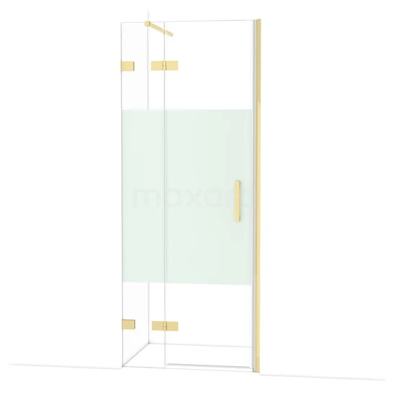 The Diamond hinged door of 80 cm is ideal for closing off your shower area. This model features a refined and luxurious design in glossy light gold and is equipped with high-quality hinges, two-point fixation, and a vertical handle. The clear glass with a matte strip ensures more privacy. Thanks to its adjustability, you can easily make the shower door fit. The total width is adjustable from 81.7 to 82.7 cm.