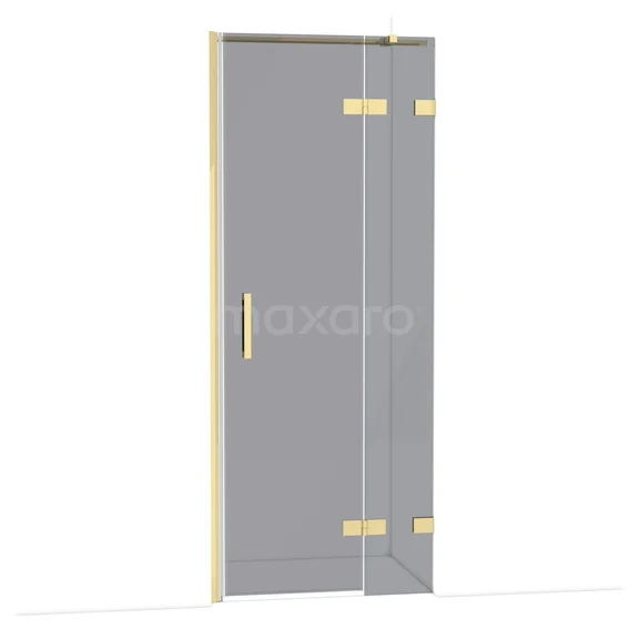 The 80 cm Diamond hinged door is ideal for closing off your shower area. This model features a refined and luxurious design in glossy light gold and is equipped with high-quality hinges, two-point fixation, and a vertical handle. The smoked glass provides a chic appearance. Thanks to its adjustability, you can easily make the shower door fit. The total width is adjustable from 81.7 to 82.7 cm.