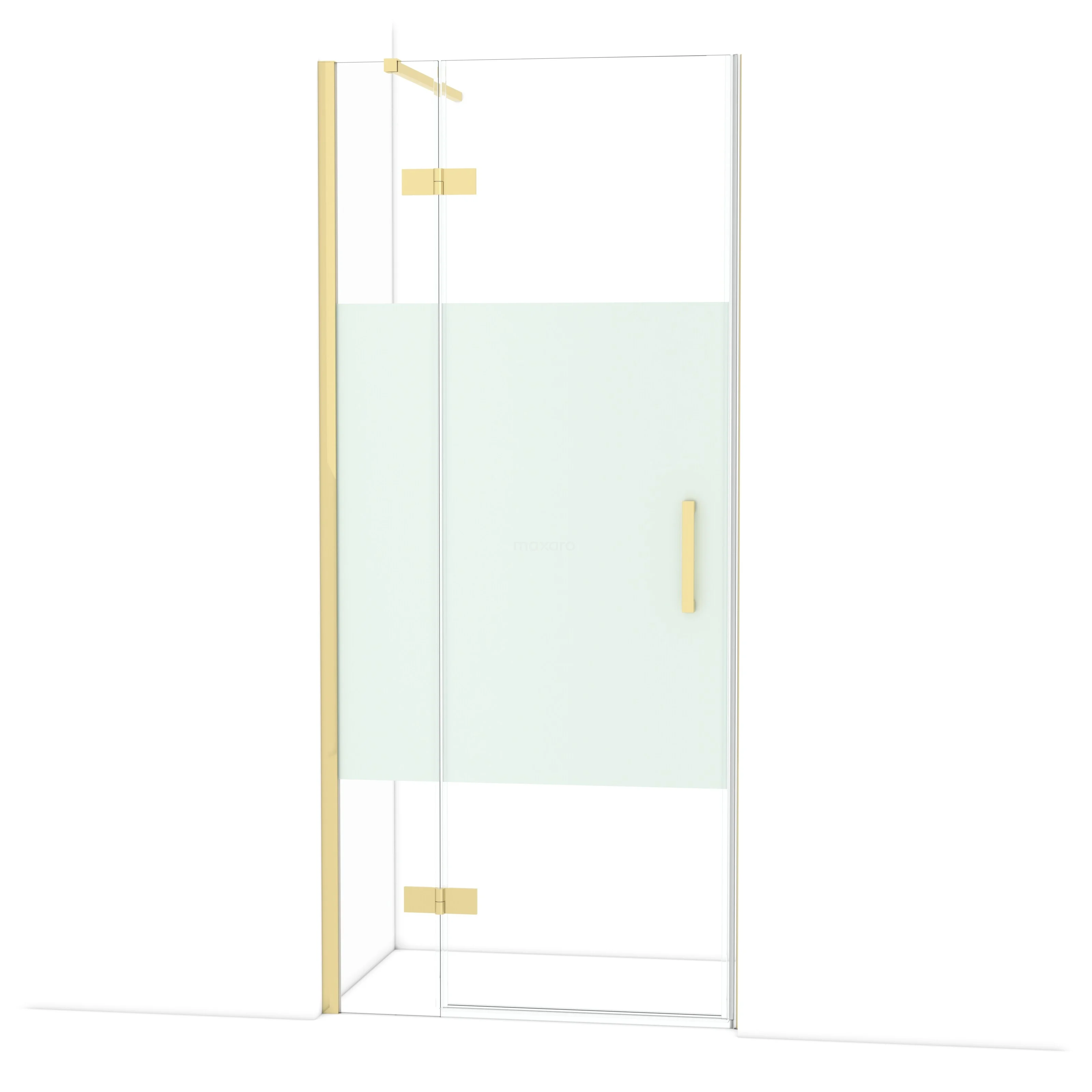 Diamond Shower door | 90 cm Glossy light gold Clear with matt strip Pivot door
