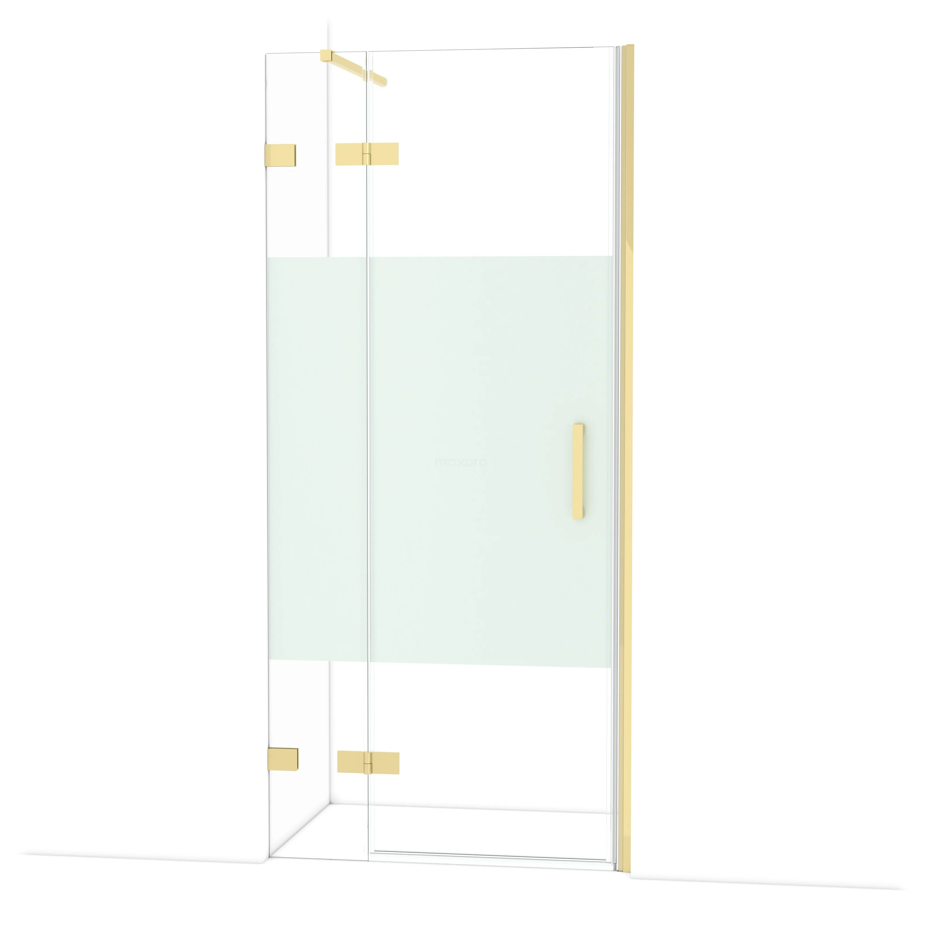 Diamond Shower door | 90 cm Shiny light gold Clear with matt strip Pivot door