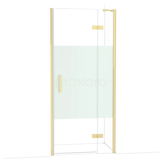 De Diamond-draaideur van 90 cm is ideaal om jouw douchenis af te sluiten. Dit exemplaar heeft een verfijnd en luxe design van glanzend lichtgoud en is voorzien van hoogwaardige scharnieren, muurprofiel en een verticaal handvat. Het helder glas met matte strook zorgt voor meer privacy. Door de verstelbaarheid maak je de douchedeur gemakkelijk passend. De totale breedte is verstelbaar van 91,8 tot en met 94 cm.