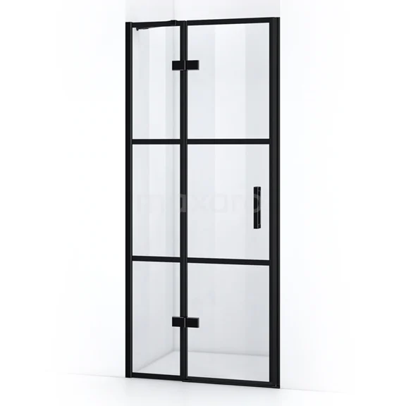 The 80 cm Pearl pivot door is ideal for closing off your shower area. This one is finished in matte black and equipped with a vertical handle and high-quality hinges. The black stripes in the glass create a cool look. The adjustability makes it easy to fit the shower door. The overall width is adjustable from 79.3 to 80.9 cm.
