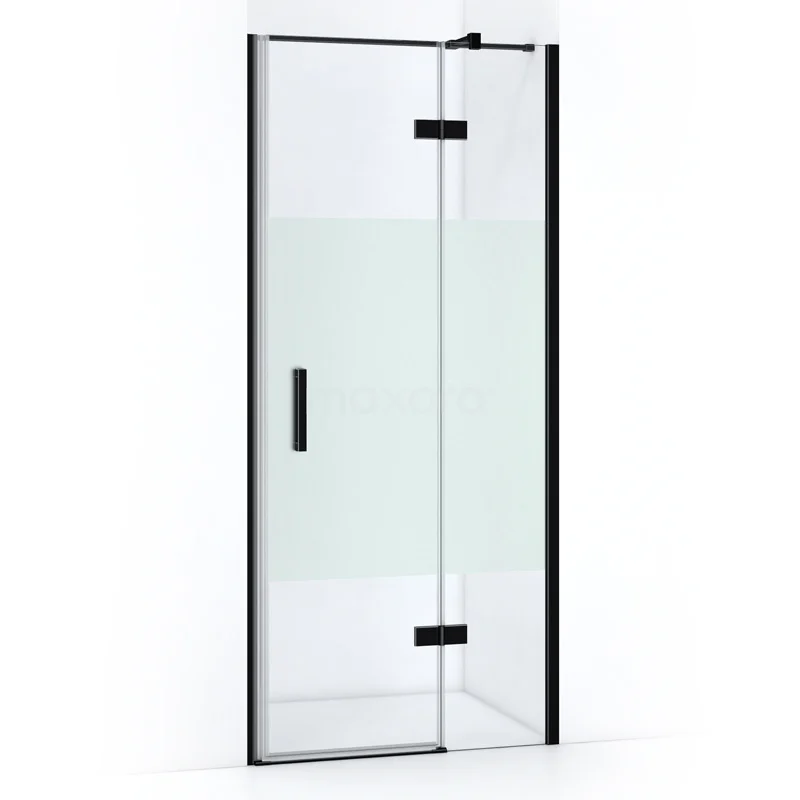 Pearl Shower door | 80 cm Matte black Clear with matt strip Pivot door