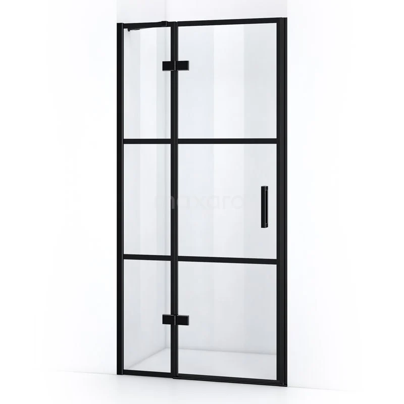 The 90 cm Pearl pivot door is ideal for closing off your shower area. This one is finished in matte black and equipped with a vertical handle and high-quality hinges. The black stripes in the glass create a cool look. The adjustability makes it easy to fit the shower door. The overall width is adjustable from 89.3 to 90.9 cm.