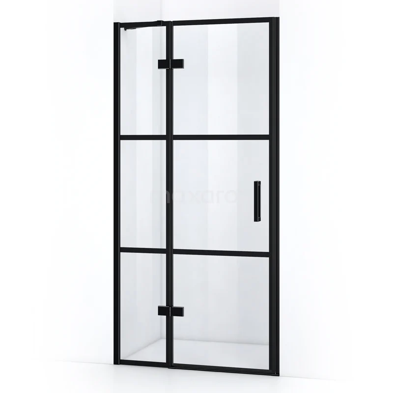 Pearl Shower door | 90 cm Matte black Clear with 4 black stripes Pivot door