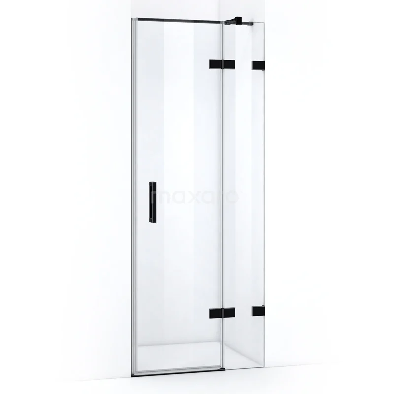 Quartz Shower door | 80 cm Matte black Clear glass Pivot door