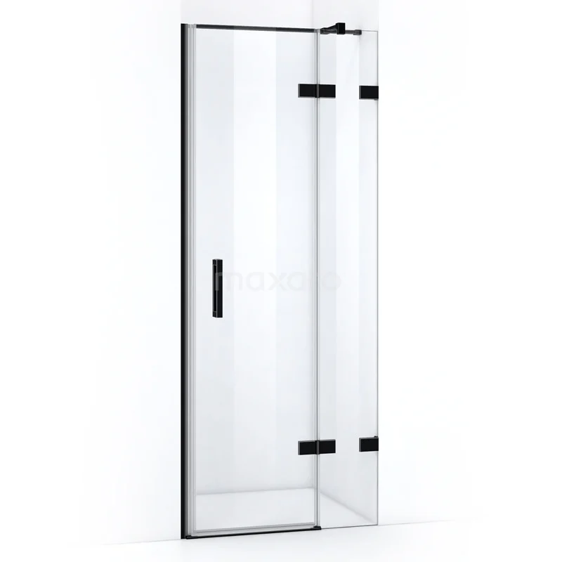 Quartz Shower door | 80 cm Matte black Clear glass Pivot door