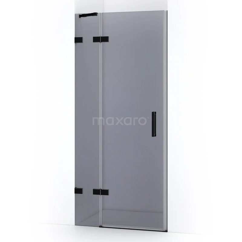 Quartz Shower door | 80 cm Matte black Smoke glass Pivot door