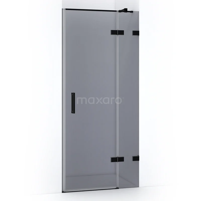 Quartz Shower door | 90 cm Matte black Smoke glass Pivot door