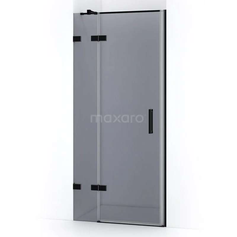 Quartz Shower door | 90 cm Matte black Smoke glass Pivot door