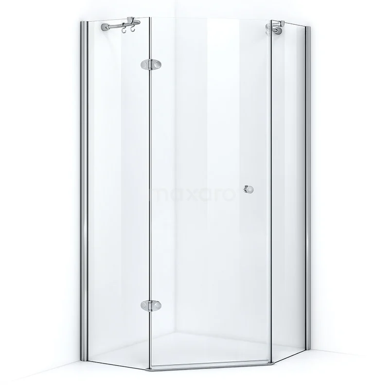 - Pentagonal shower enclosure with 1 large pivot door and 2 fixed walls