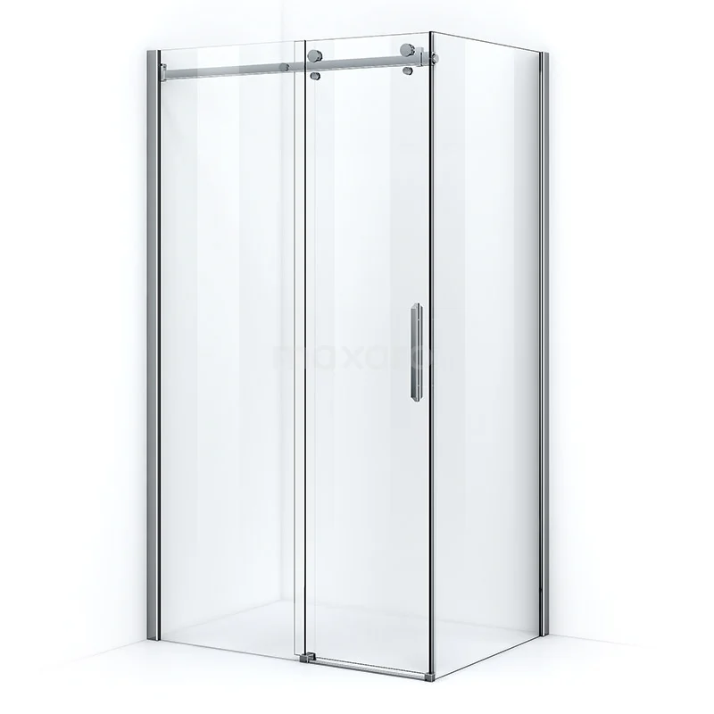- Rectangular shower enclosure with stainless steel roller system, where the sliding door only rolls over the top profile. This ensures a calm appearance and ideal ease of cleaning.