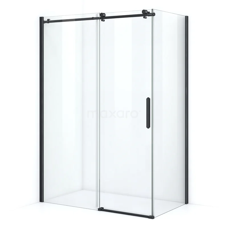 - Rectangular shower enclosure with black roller system, where the sliding door only rolls over the top profile. This ensures a calm appearance and ideal ease of cleaning