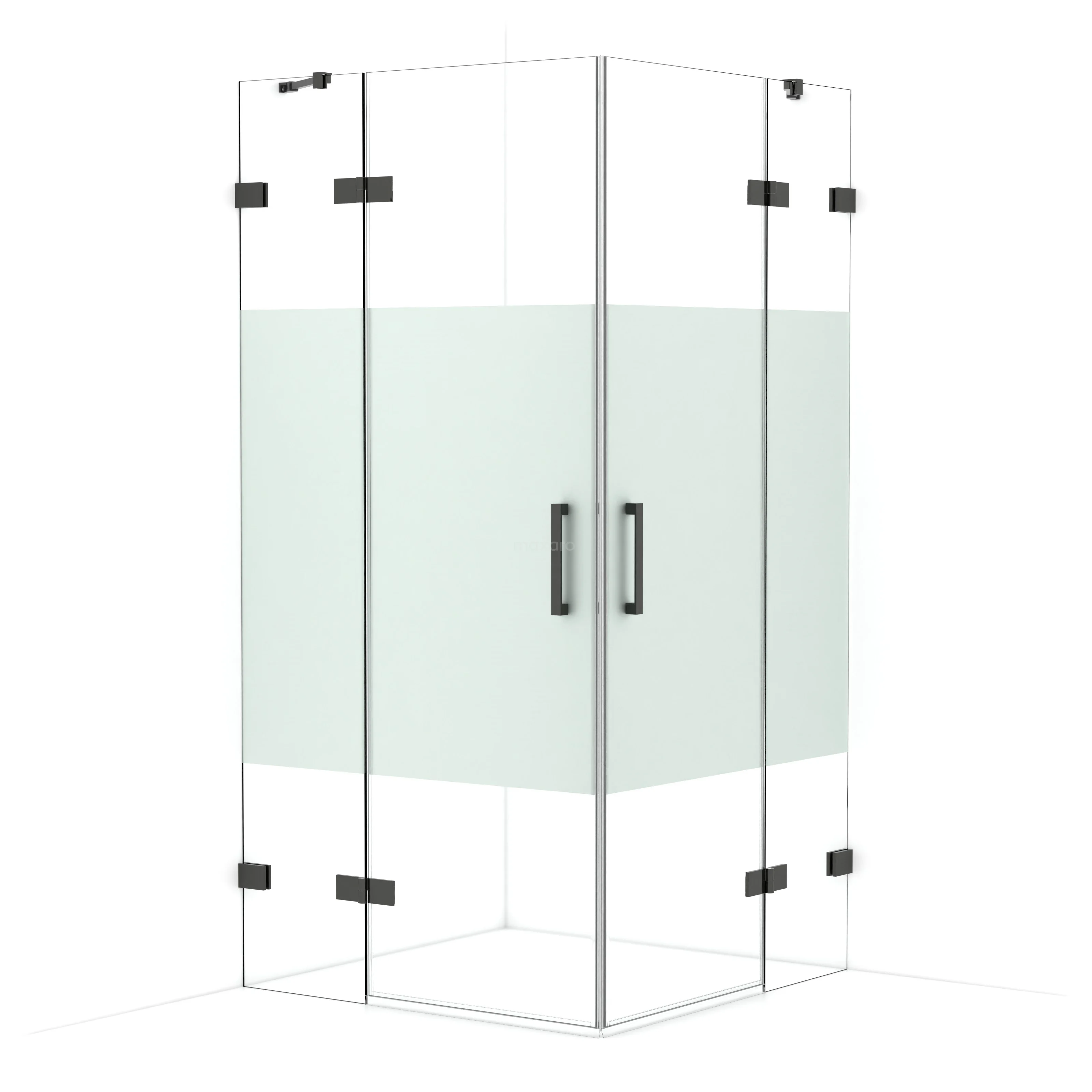 Diamond Shower cabin | 100x100 cm Black chrome Clear with matt strip Pivot door Square