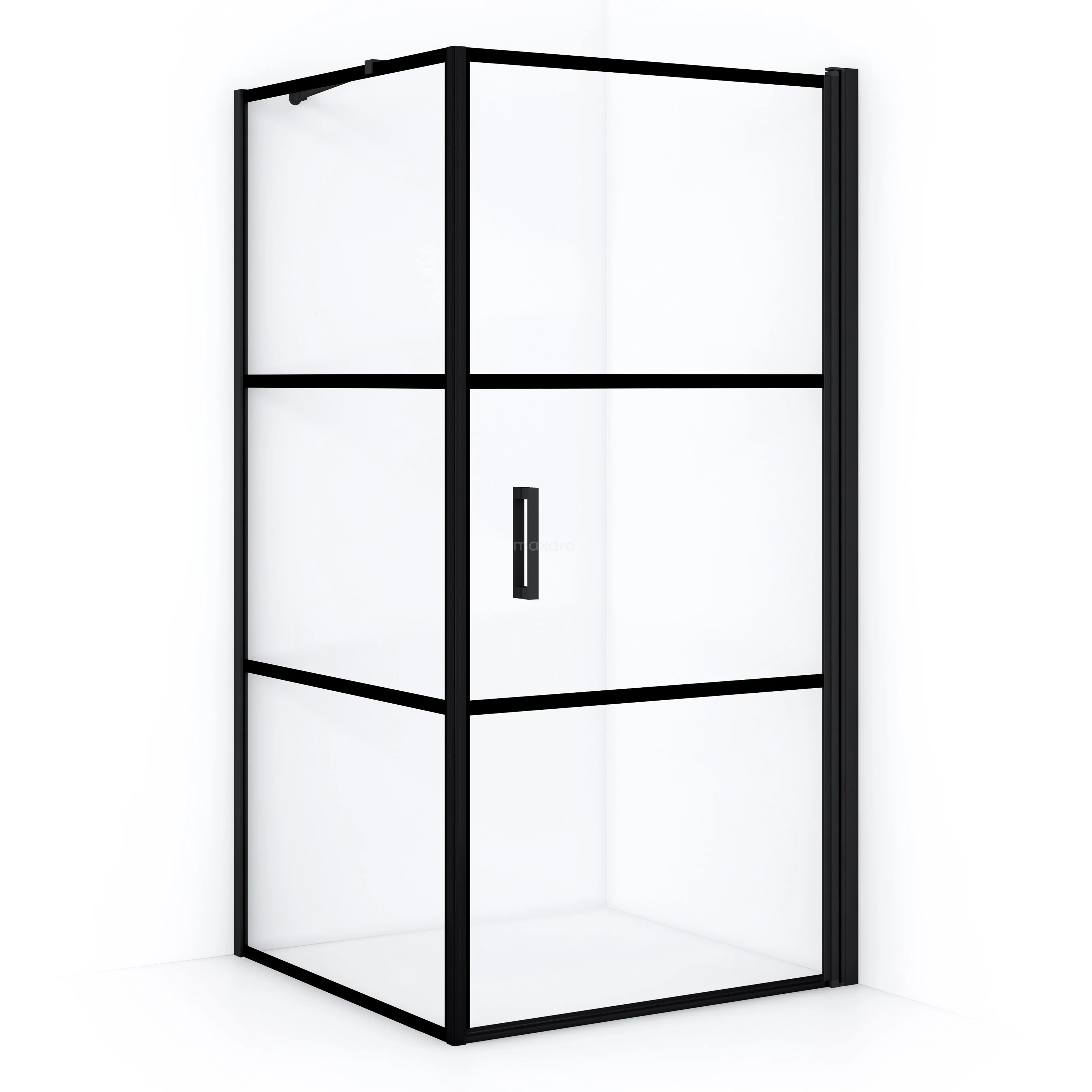 Diamond Shower cabin | 100x100 cm Matte black Clear with 4 black stripes Pivot door Square