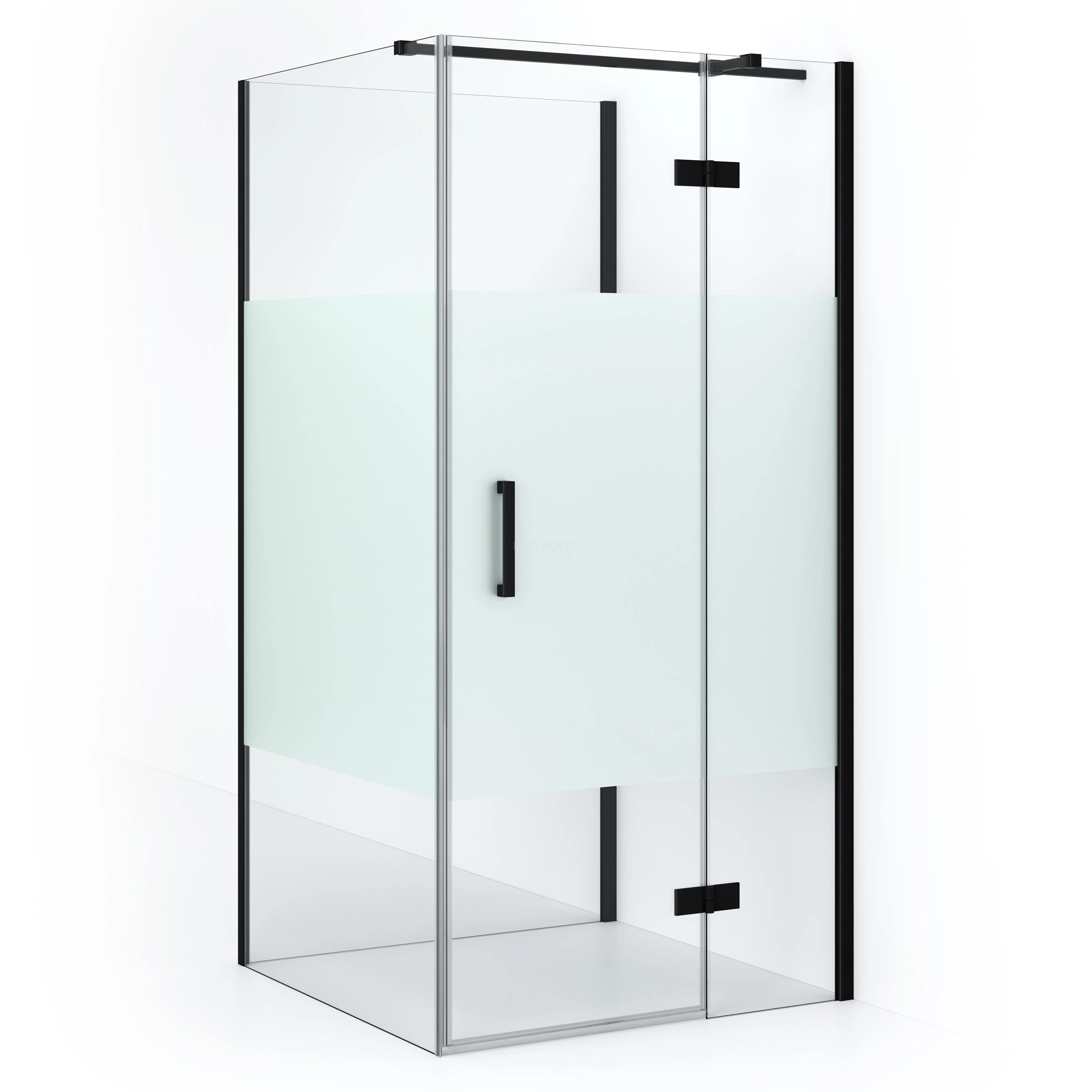 In the stylish semi-detached Diamond shower enclosure, measuring 100x100 cm, you will enjoy wonderful shower sessions every day. This square enclosure is characterised by a wall profile and the vertical handle. This one has a cool, matte black finish and clear glass with a frosted strip for more privacy. The shower is adjustable, making it easy to fit. The door side and parallel fixed wall are adjustable from 98.1 - 99.6 cm. The angled fixed wall has a fixed size of 100.6 cm.