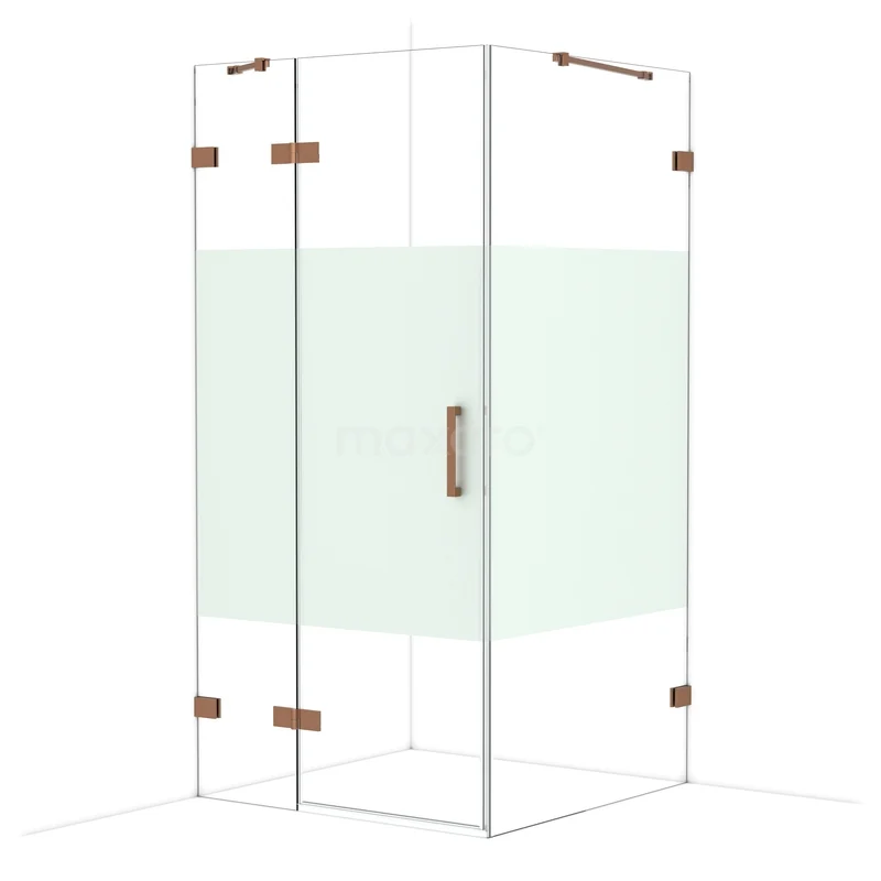 Diamond Shower cabin | 100x100 cm Shiny copper Clear with matt strip Pivot door Square