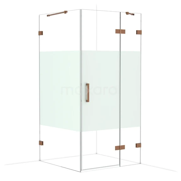 Diamond Shower cabin | 100x100 cm Shiny copper Clear with matt strip Pivot door Square