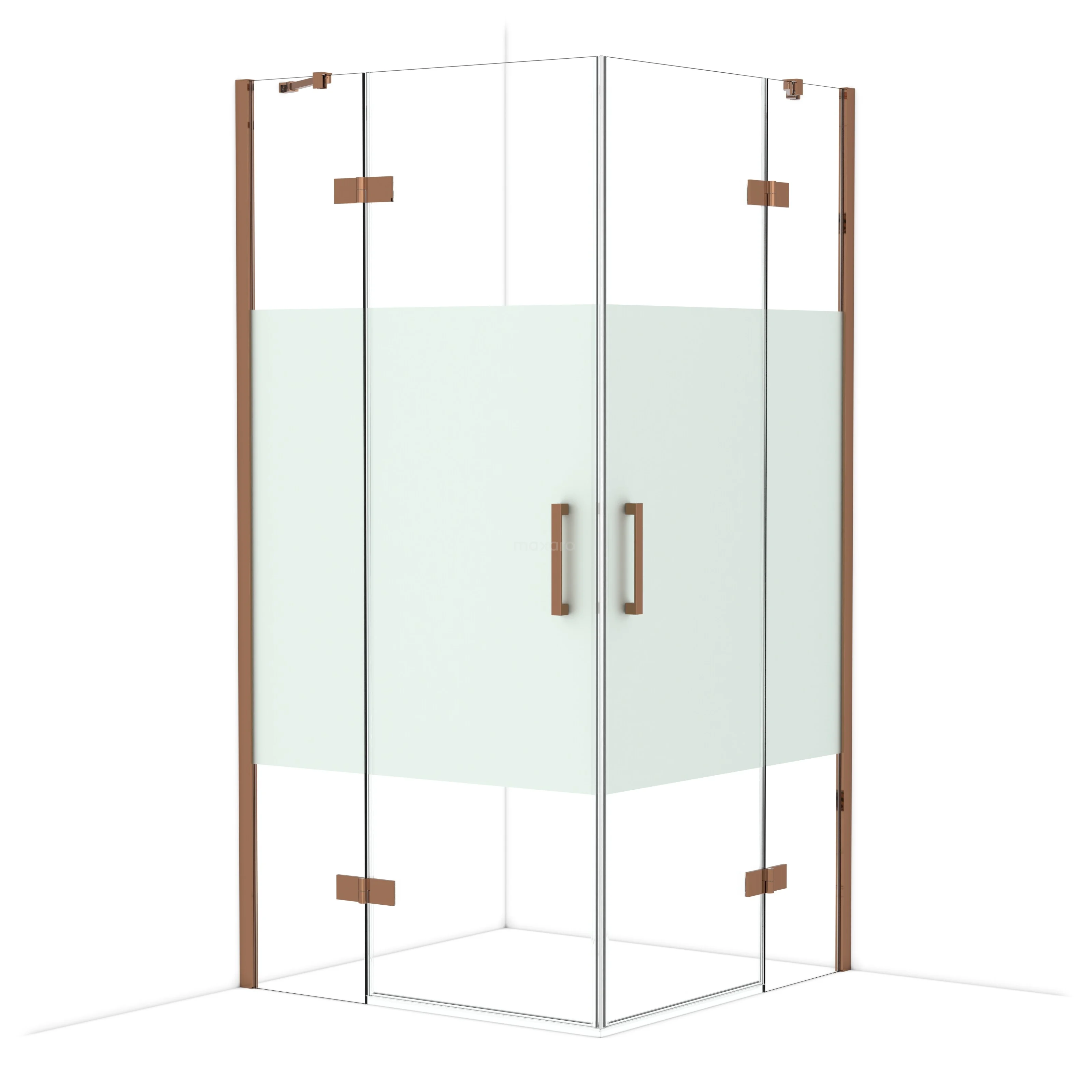 Diamond Shower cabin | 100x100 cm Shiny copper Clear with matt strip Pivot door Square