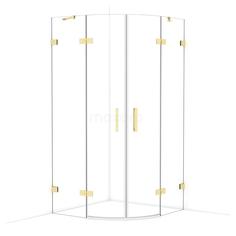 Diamond Shower cabin | 100x100 cm Shiny light gold Clear glass Pivot door Quarter round