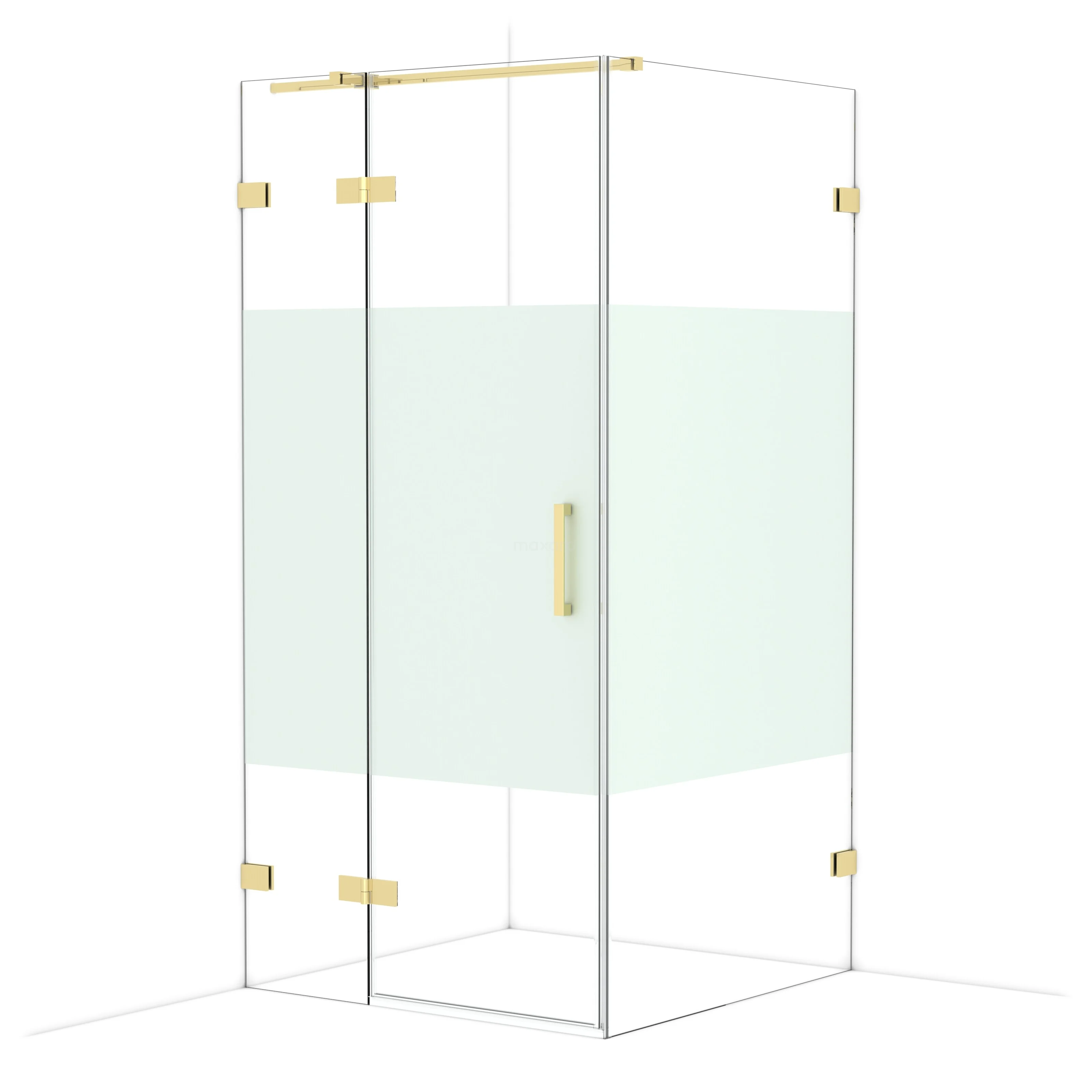 Diamond Shower cabin | 100x100 cm Shiny light gold Clear with matt strip Pivot door Square