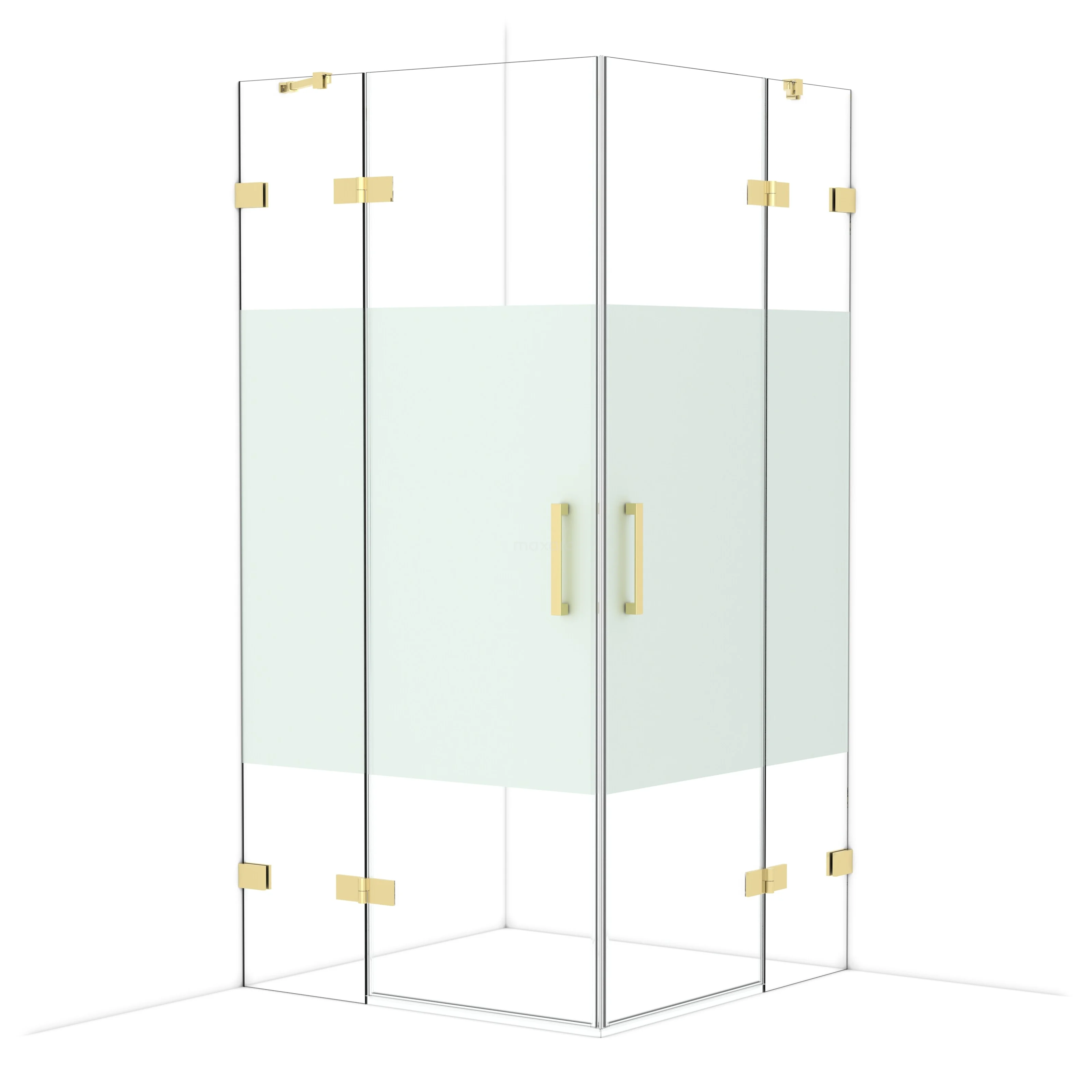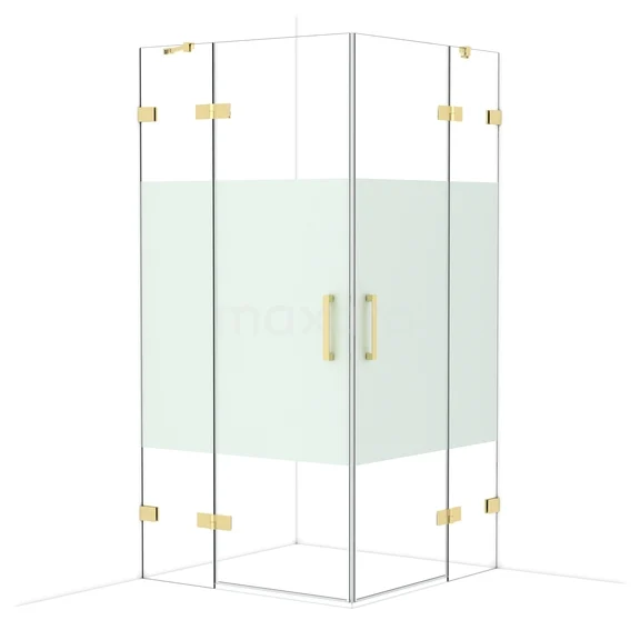 Diamond Shower cabin | 100x100 cm Shiny light gold Clear with matt strip Pivot door Square
