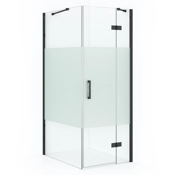 Diamond Shower cabin | 100x80 cm Black chrome Clear with matt strip Pivot door Rectangle
