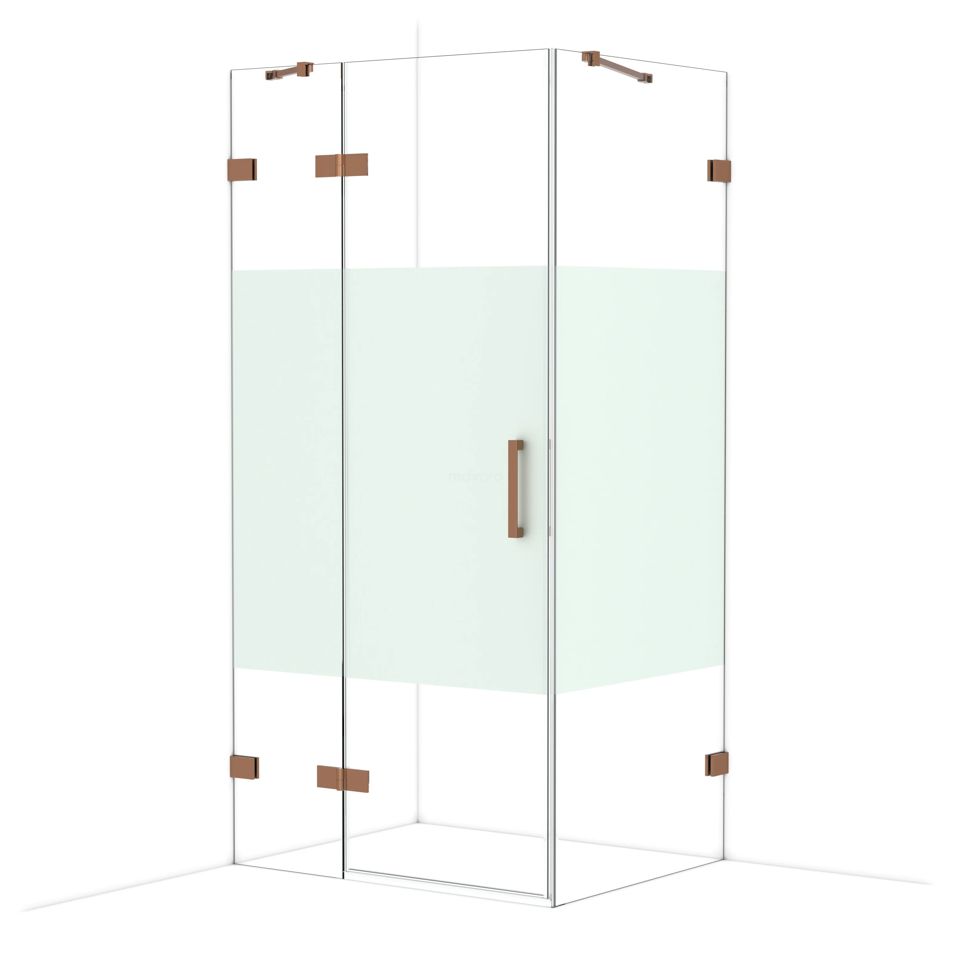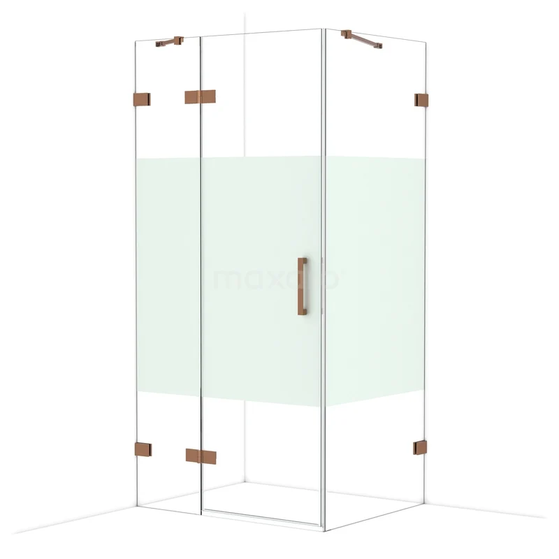 Diamond Shower cabin | 100x80 cm Shiny copper Clear with matt strip Pivot door Rectangle