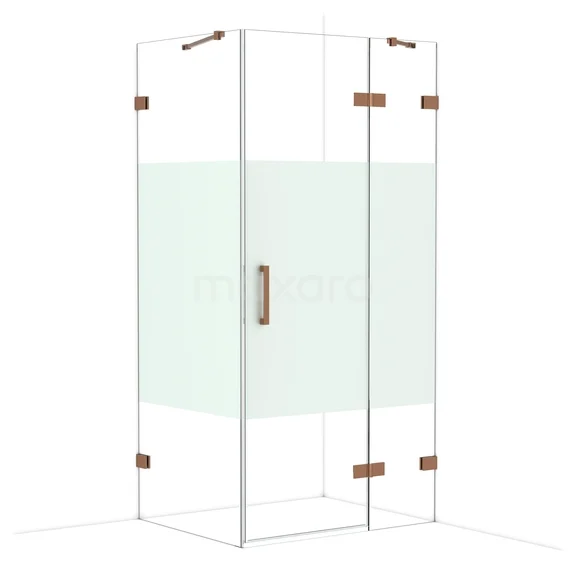 Diamond Shower cabin | 100x80 cm Shiny copper Clear with matt strip Pivot door Rectangle