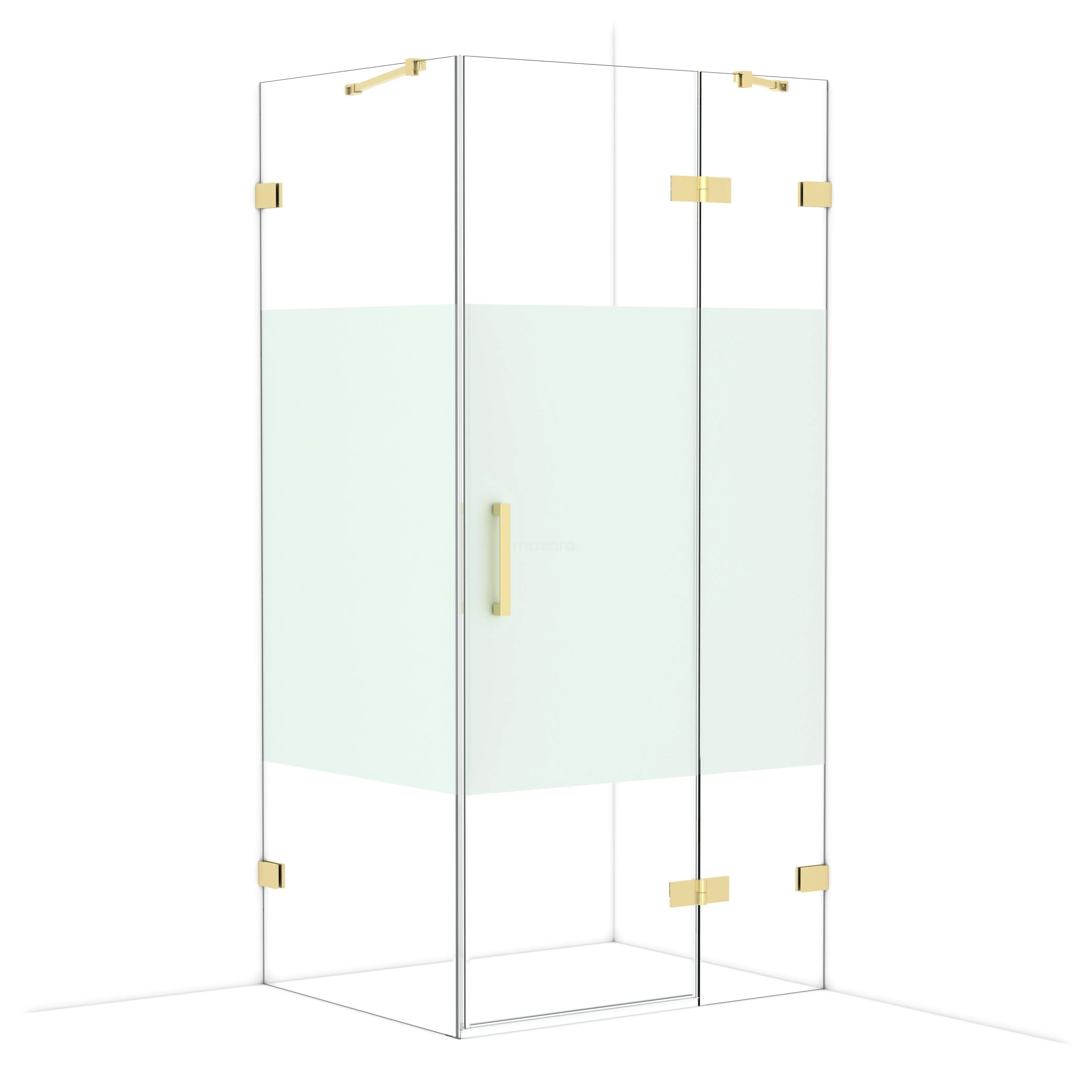 In the stylish Diamond shower cabin measuring 100x80 cm, you can enjoy delightful shower sessions every day. This rectangular cabin is characterised by a two-point attachment and a vertical handle. This model features a refined and luxurious design in glossy light gold and is equipped with clear glass with a matte strip for added privacy. The shower is adjustable, making it easy to customise.