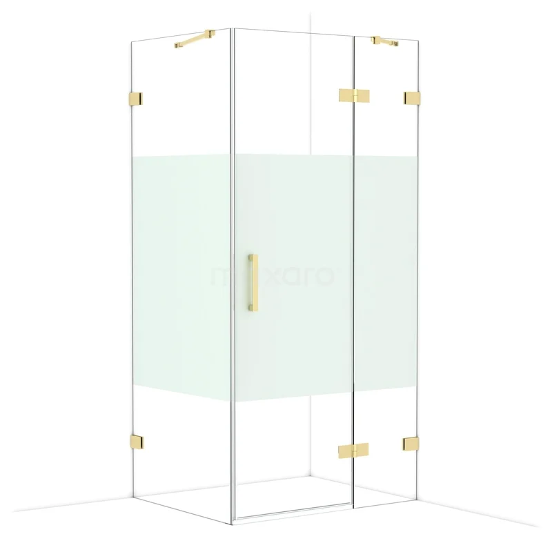 Diamond Shower cabin | 100x80 cm Shiny light gold Clear with matt strip Pivot door Rectangle