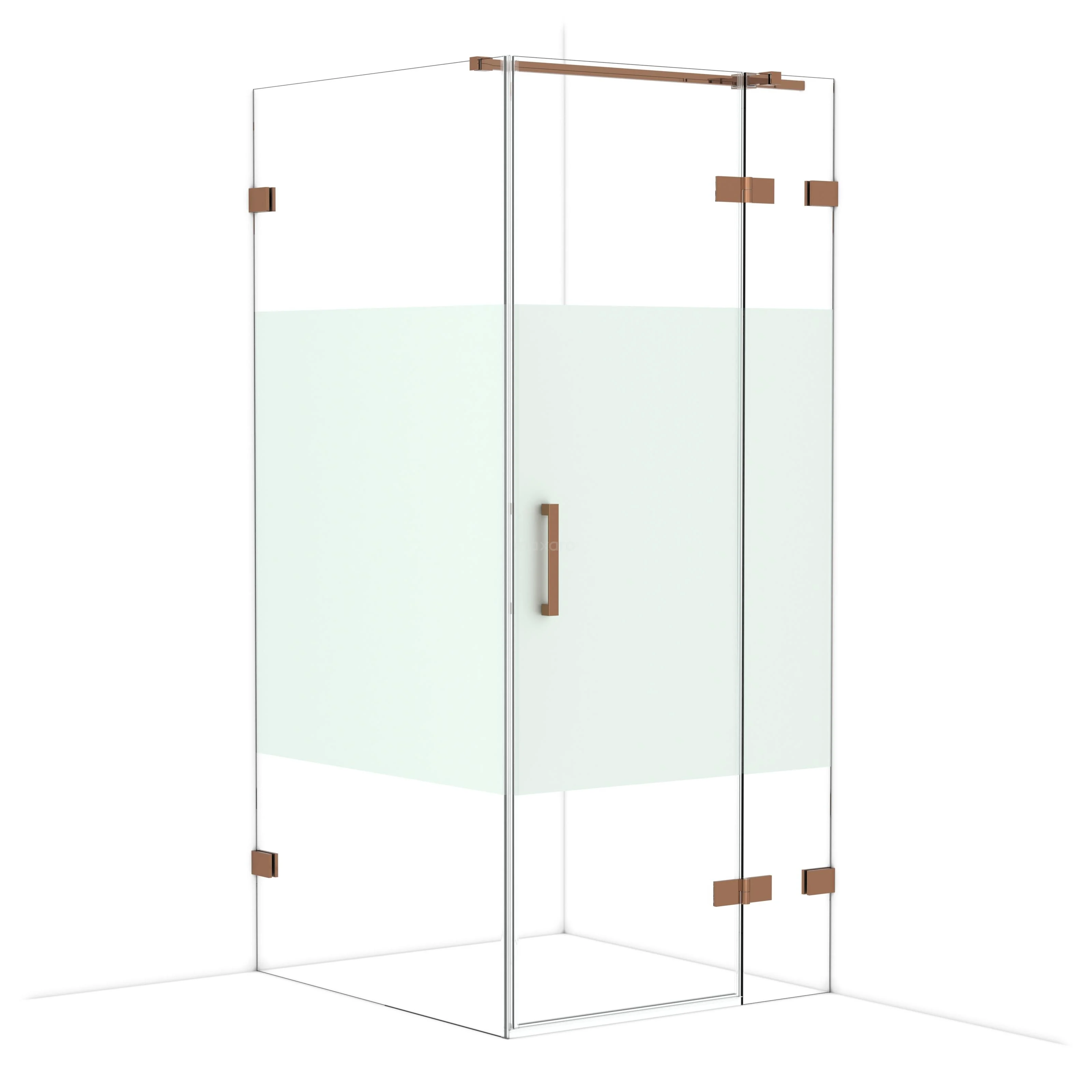 Diamond Shower cabin | 100x90 cm Shiny copper Clear with matt strip Pivot door Rectangle