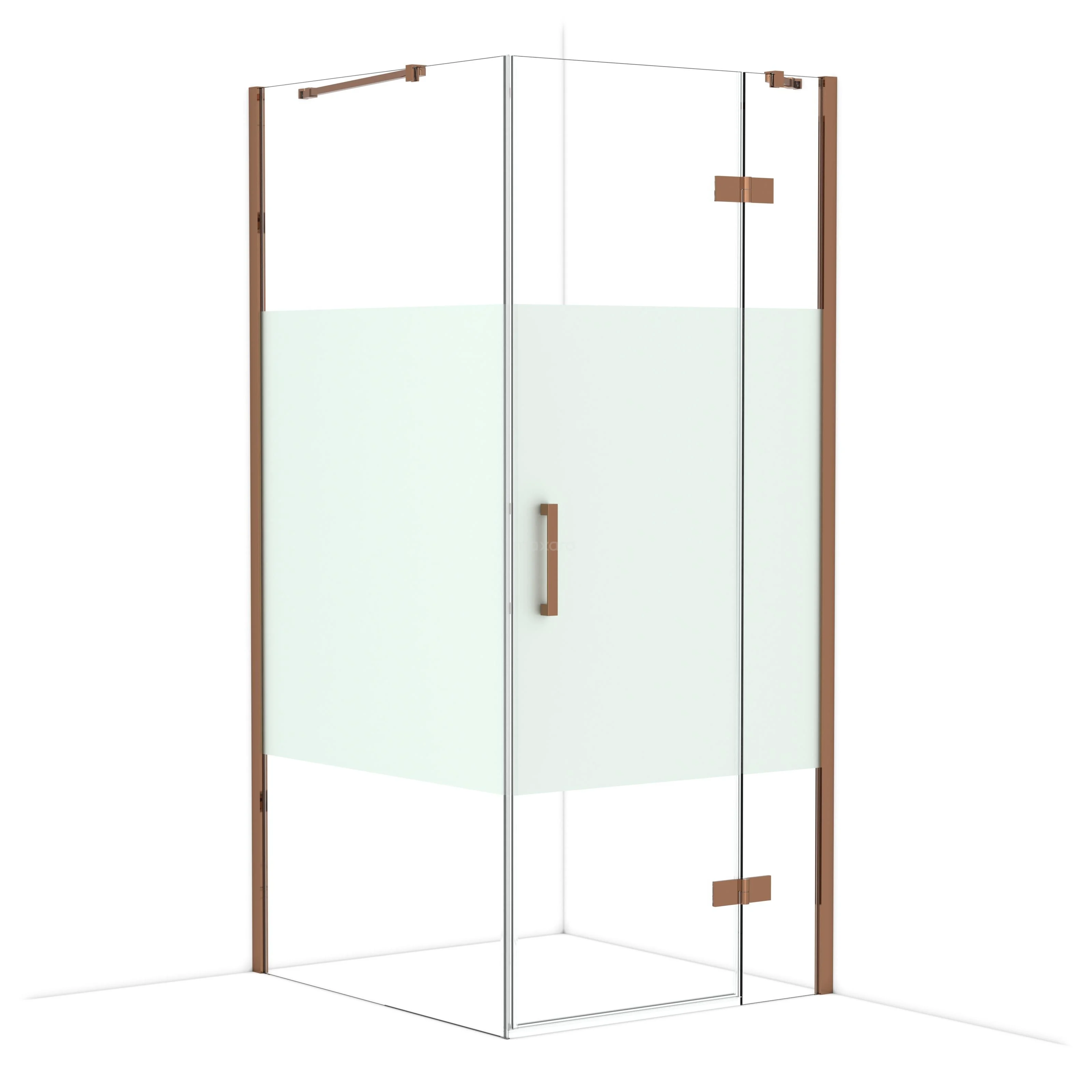 In the stylish Diamond shower cabin measuring 100x90 cm, you can enjoy delightful shower sessions daily. This rectangular cabin is characterised by a wall profile and a vertical handle. This model features a striking design in shiny copper and is equipped with clear glass with a matte strip for added privacy. The shower is adjustable, allowing you to easily customise it.