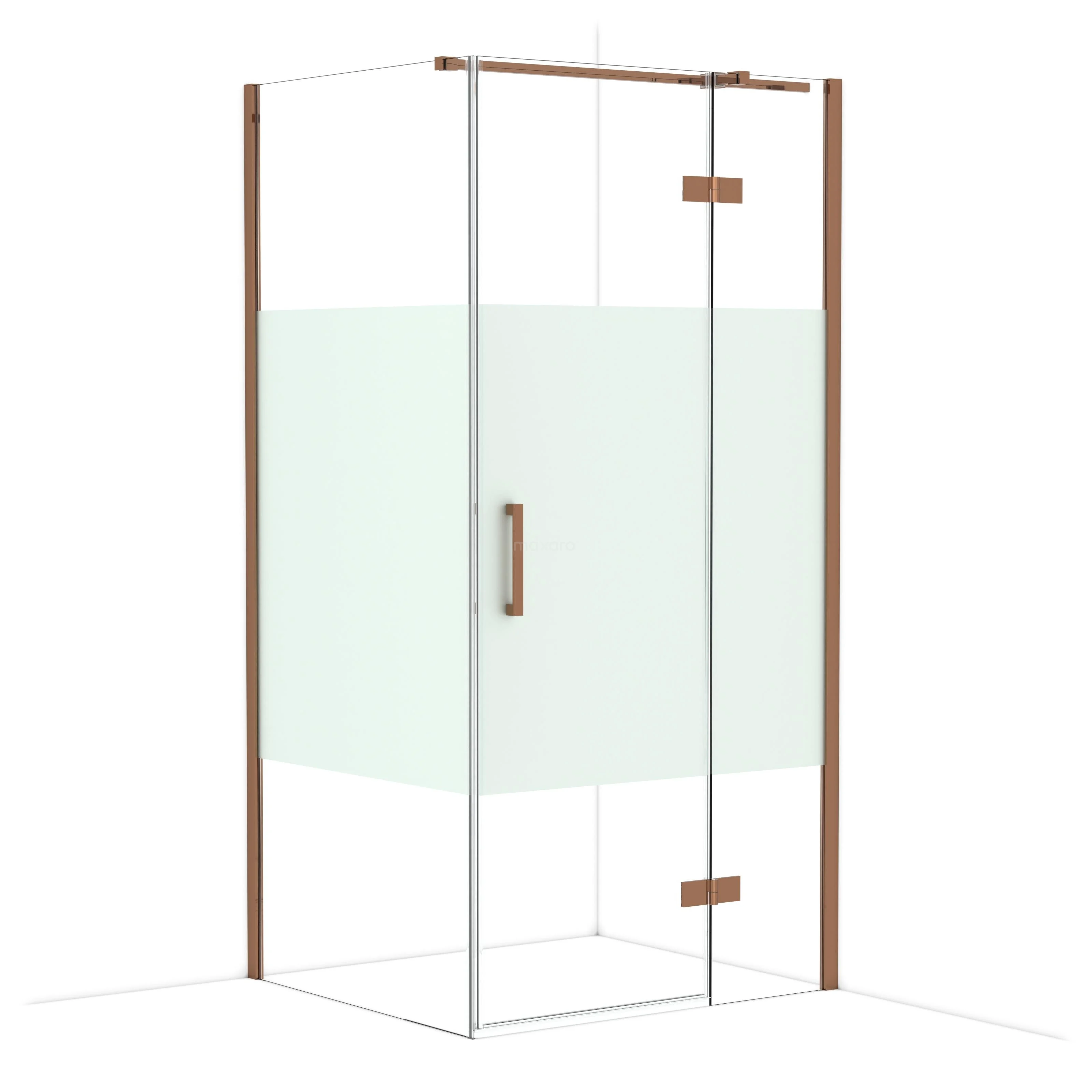 Diamond Shower cabin | 100x90 cm Shiny copper Clear with matt strip Pivot door Rectangle