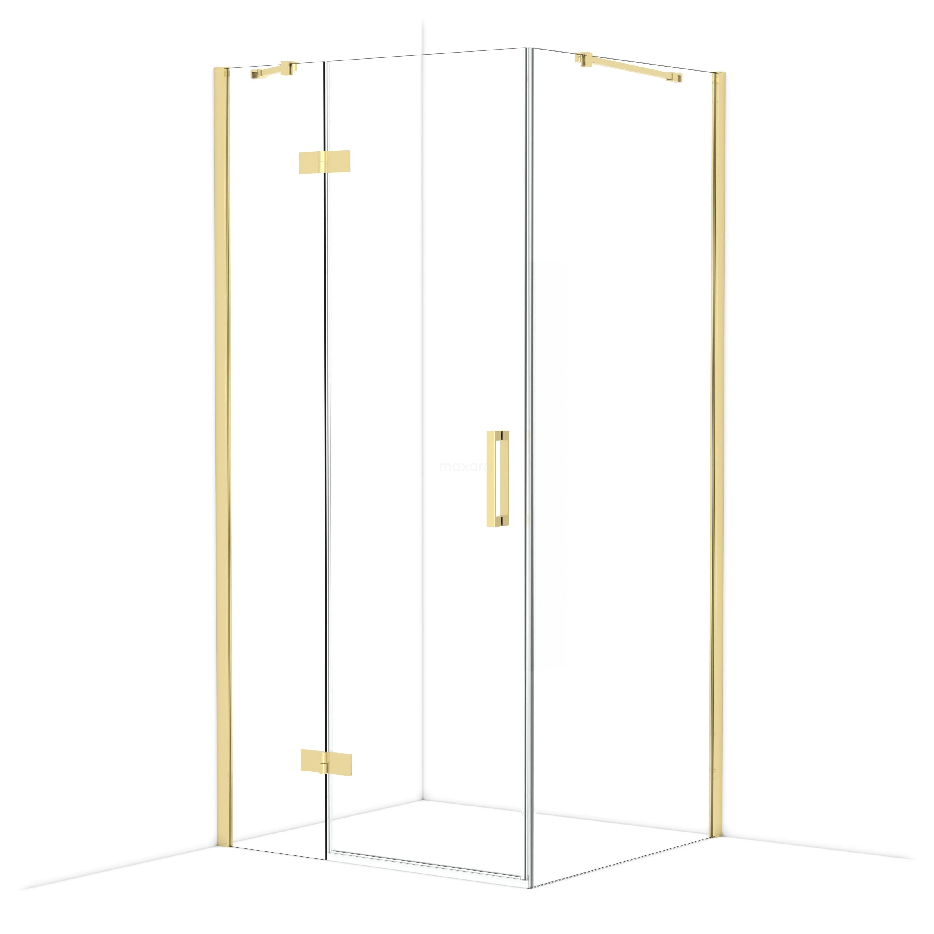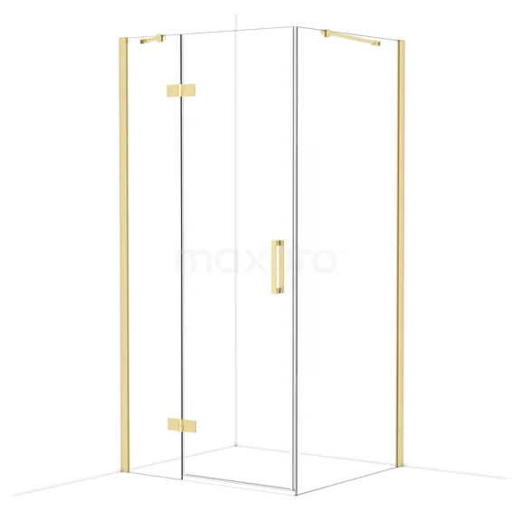 Diamond Shower cabin | 100x90 cm Shiny light gold Clear glass Pivot door Rectangle