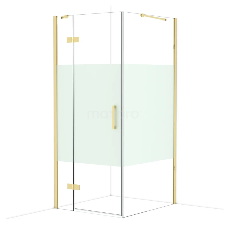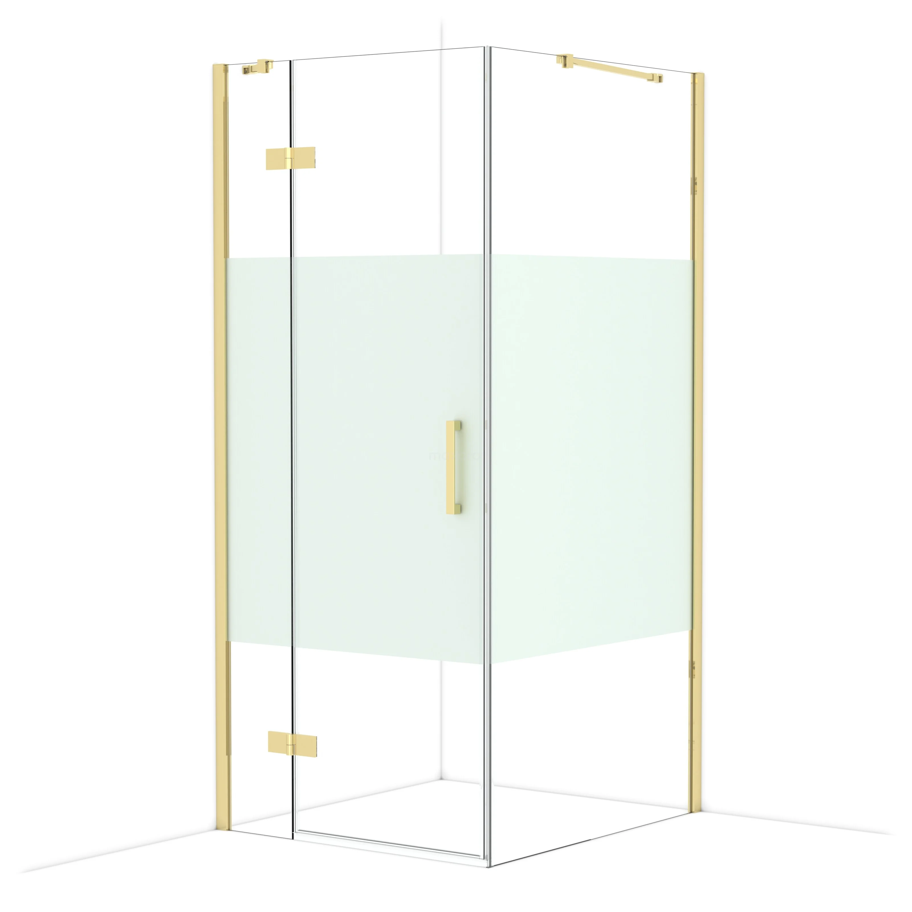 Diamond Shower cabin | 100x90 cm Shiny light gold Clear with matt strip Pivot door Rectangle