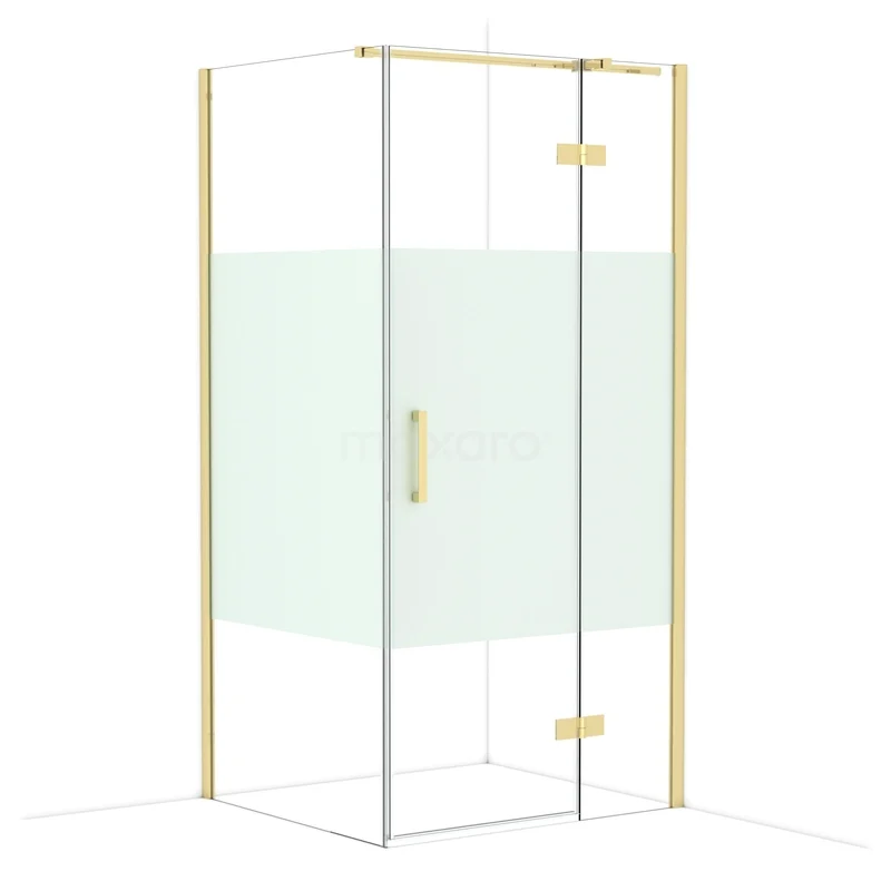 Diamond Shower cabin | 100x90 cm Shiny light gold Clear with matt strip Pivot door Rectangle