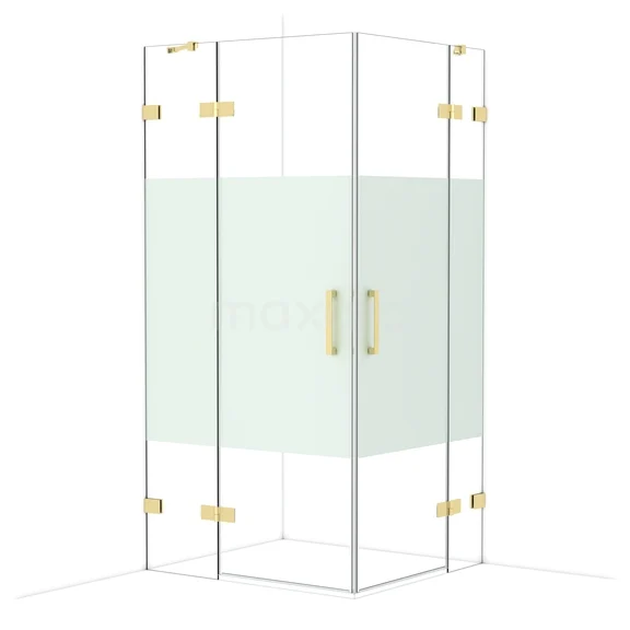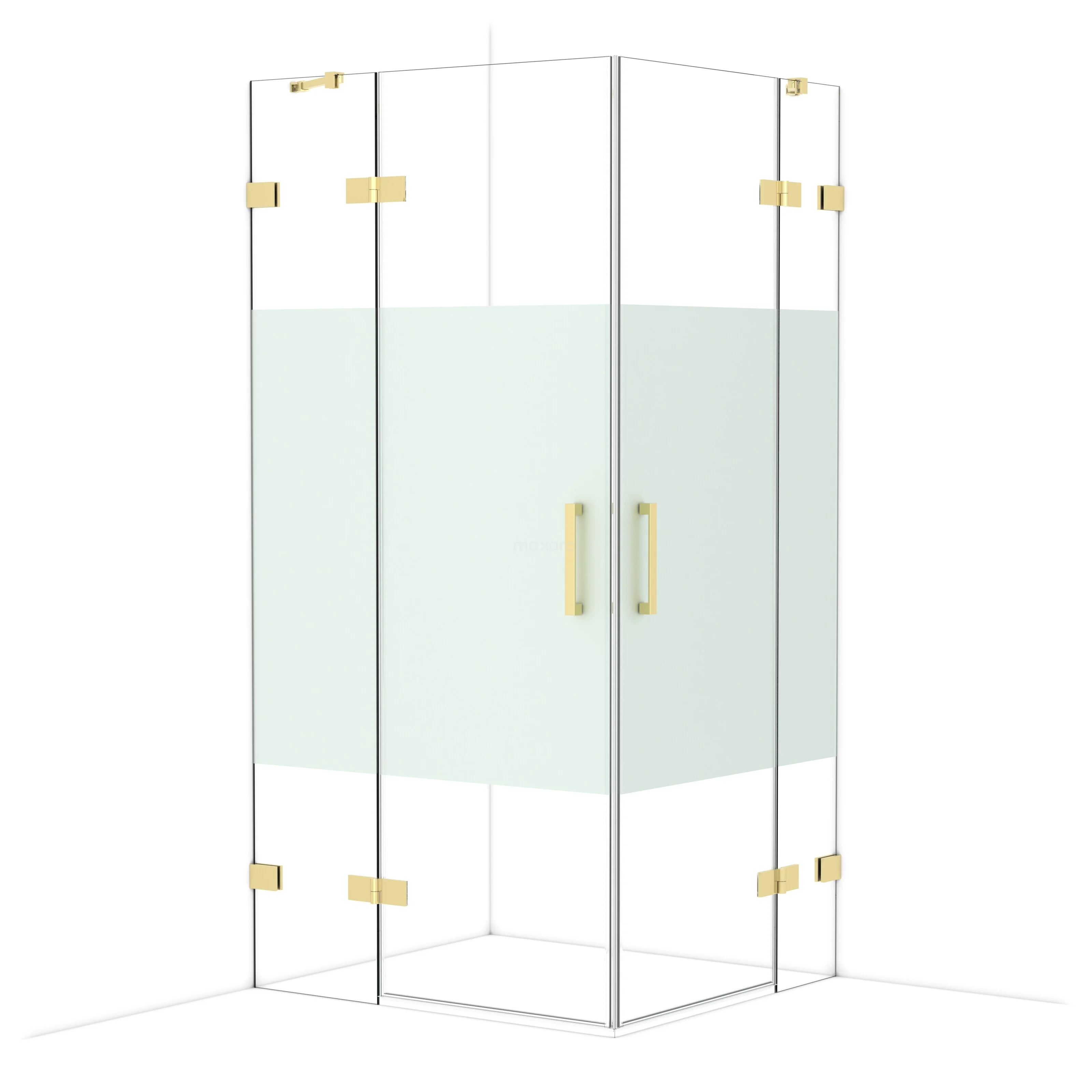 Diamond Shower cabin | 100x90 cm Shiny light gold Clear with matt strip Pivot door Rectangle