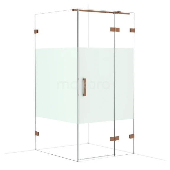 Diamond Shower cabin | 110x100 cm Shiny copper Clear with matt strip Pivot door Rectangle