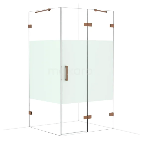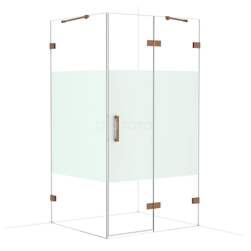 Diamond Shower cabin | 110x100 cm Shiny copper Clear with matt strip Pivot door Rectangle