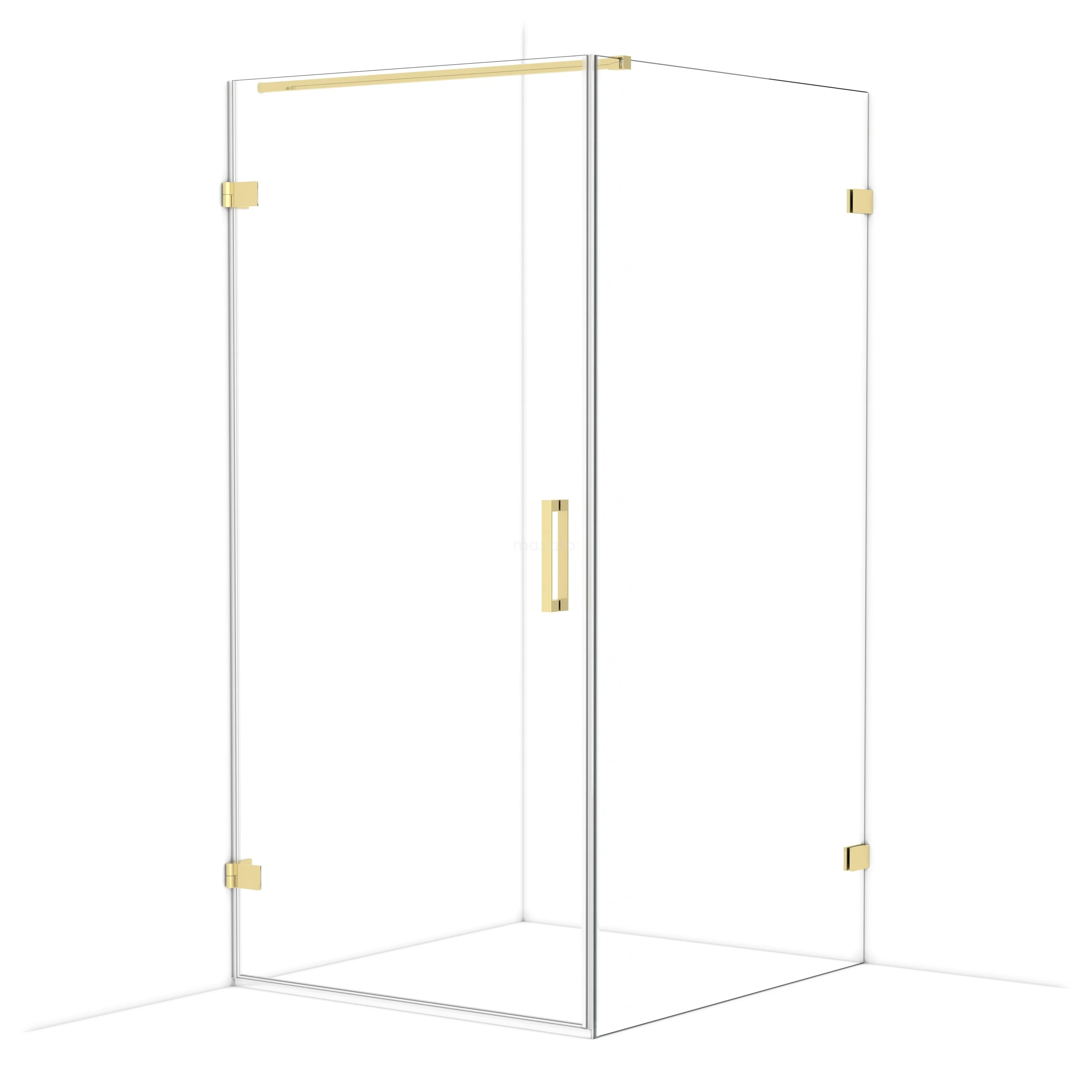In the stylish Diamond shower cabin measuring 110x100 cm, you can enjoy delightful shower sessions every day. This rectangular cabin is characterised by a two-point attachment and the vertical handle. This model features a refined and luxurious design in shiny light gold and is equipped with clear glass for a spacious feel. The door side has an absolute measurement of 98.1 cm. The fixed wall is adjustable, making it easy to fit.