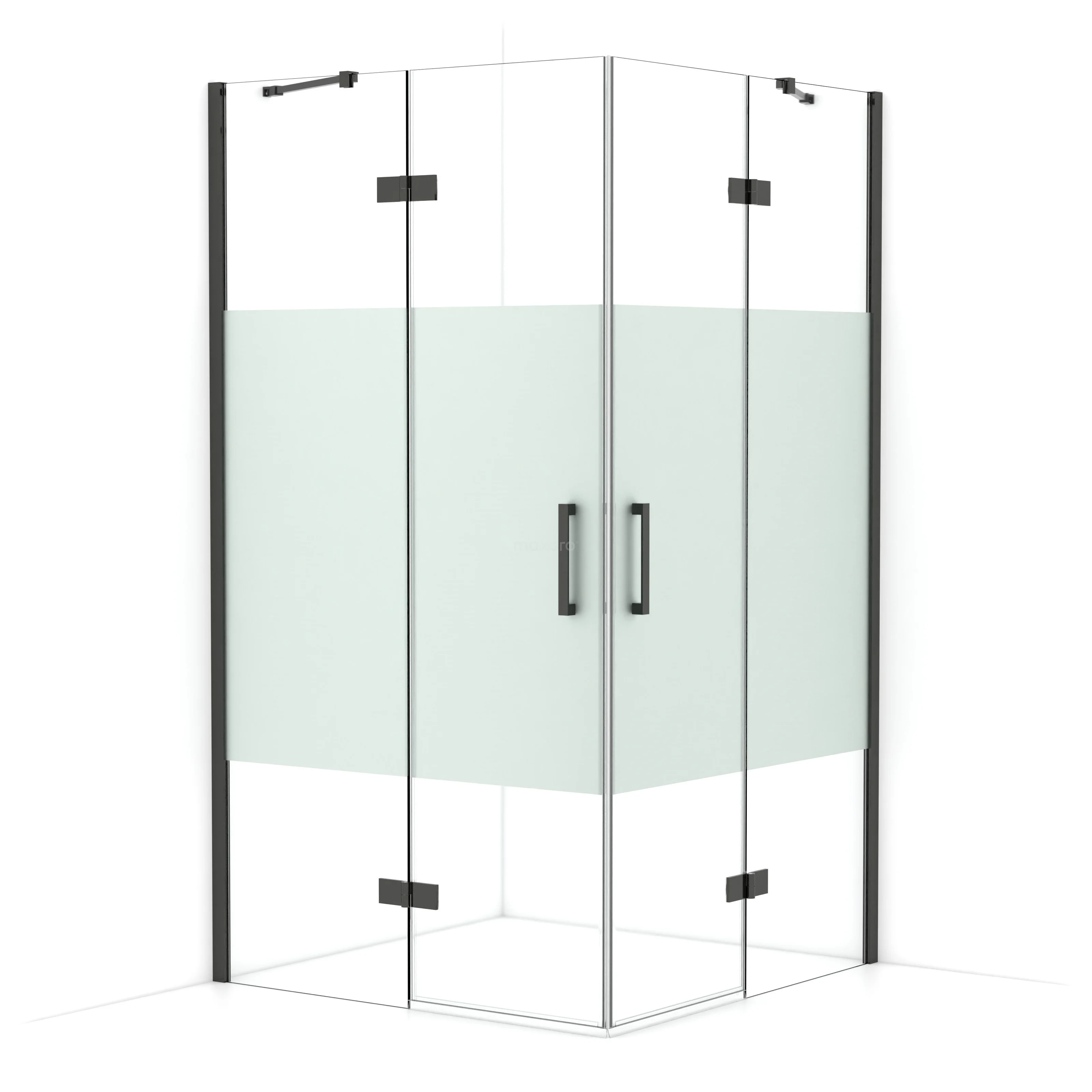 Diamond Shower cabin | 110x110 cm Black chrome Clear with matt strip Pivot door Square