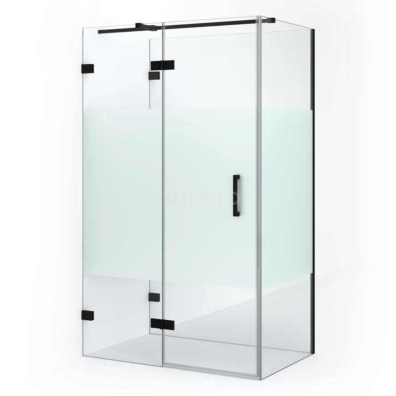 In the stylish semi-free-standing Diamond shower enclosure, measuring 110x80 cm, you will enjoy wonderful shower sessions every day. This Semi-free-standing rectangular enclosure is characterised by a two-point fastening and the vertical handle. This one has a cool, matte black finish and clear glass with a frosted strip for more privacy. The shower is adjustable, making it easy to fit. The door side and parallel fixed wall are adjustable from 108.0 - 108.3 cm. The angled fixed wall has a fixed size of 79.1 cm.