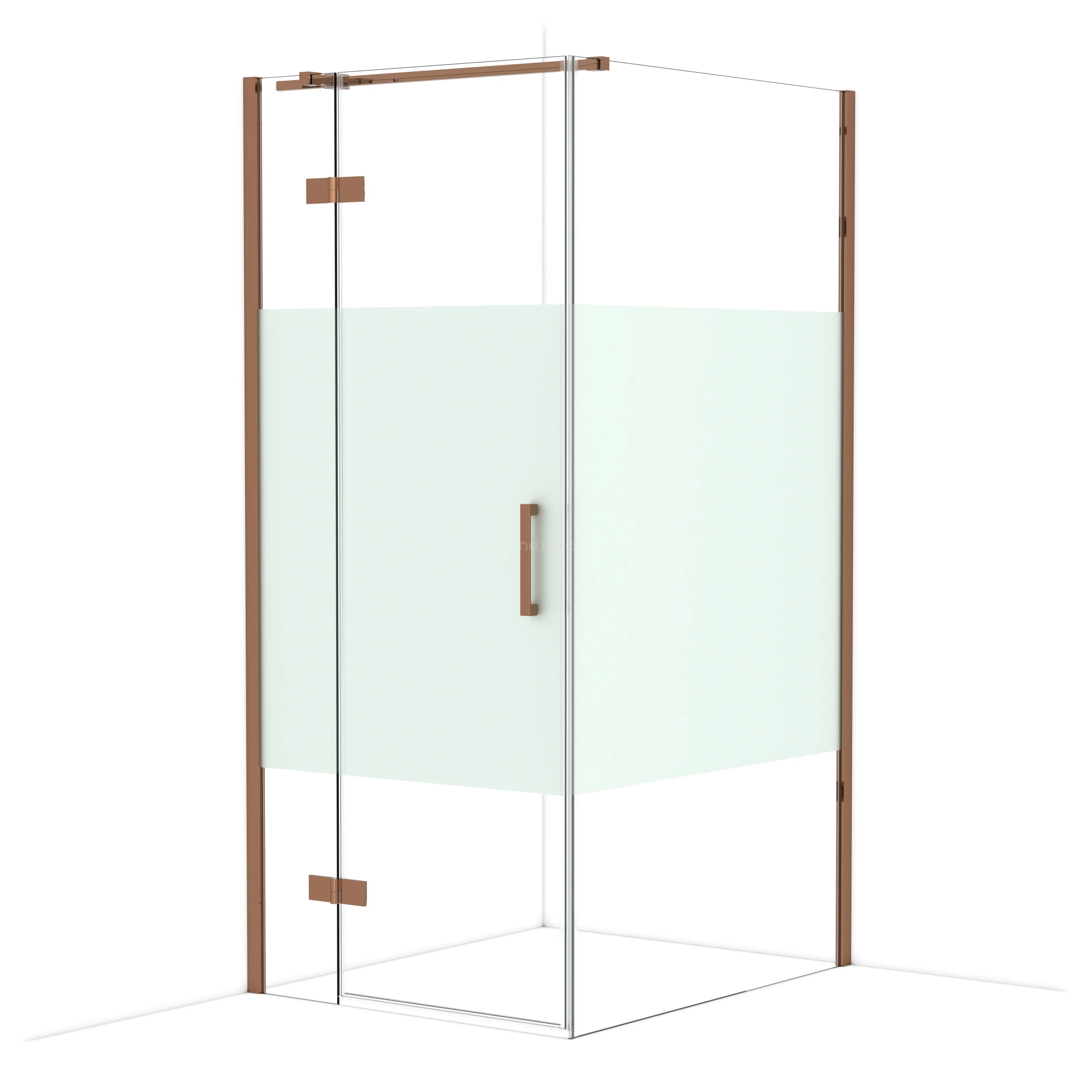 Diamond Shower cabin | 110x90 cm Shiny copper Clear with matt strip Pivot door Rectangle