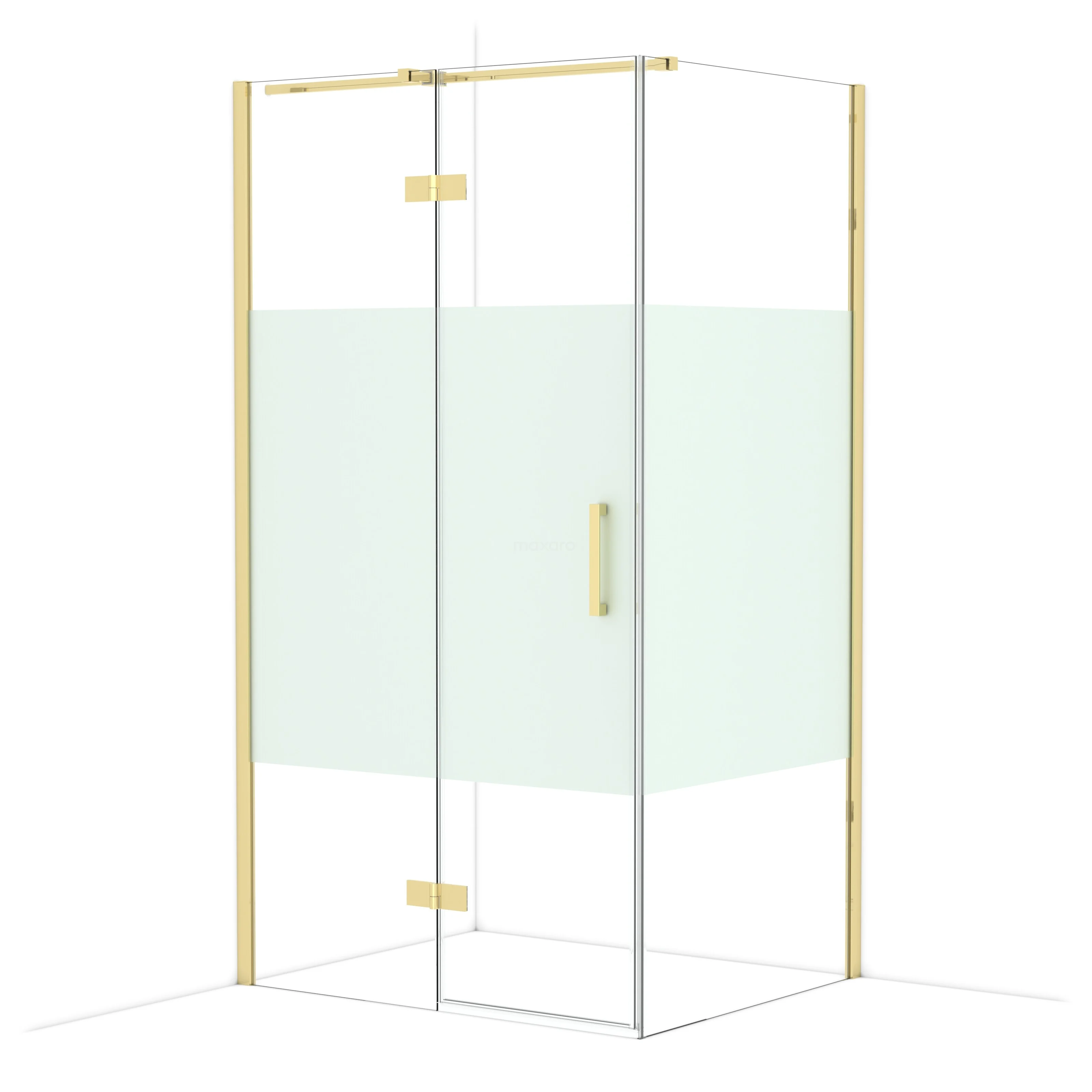 Diamond Shower cabin | 110x90 cm Shiny light gold Clear with matt strip Pivot door Rectangle