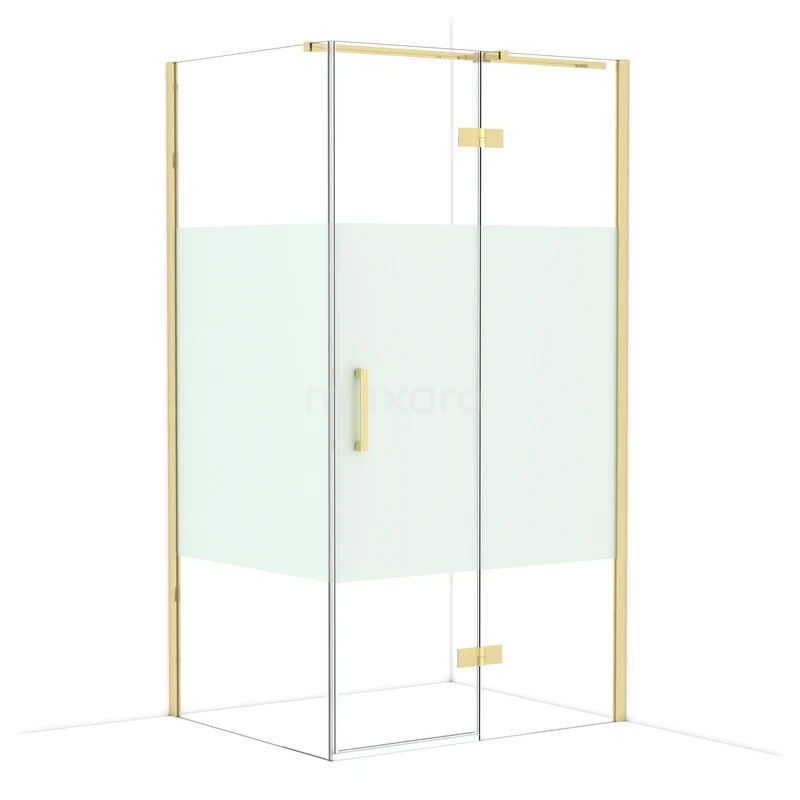 Diamond Shower cabin | 110x90 cm Shiny light gold Clear with matt strip Pivot door Rectangle