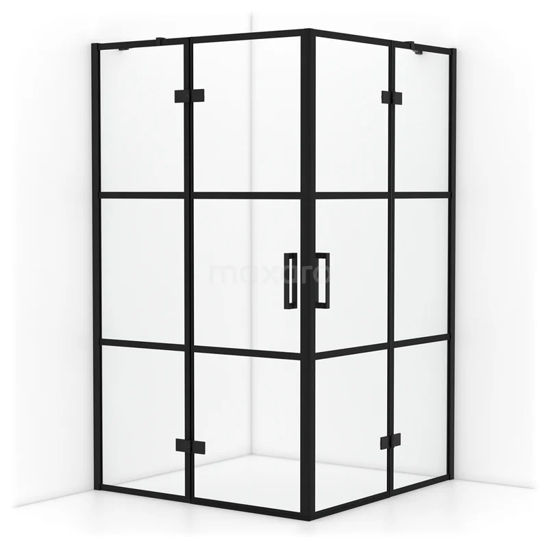 Diamond Shower cabin | 120x120 cm Matte black Clear with 4 black stripes Pivot door Square