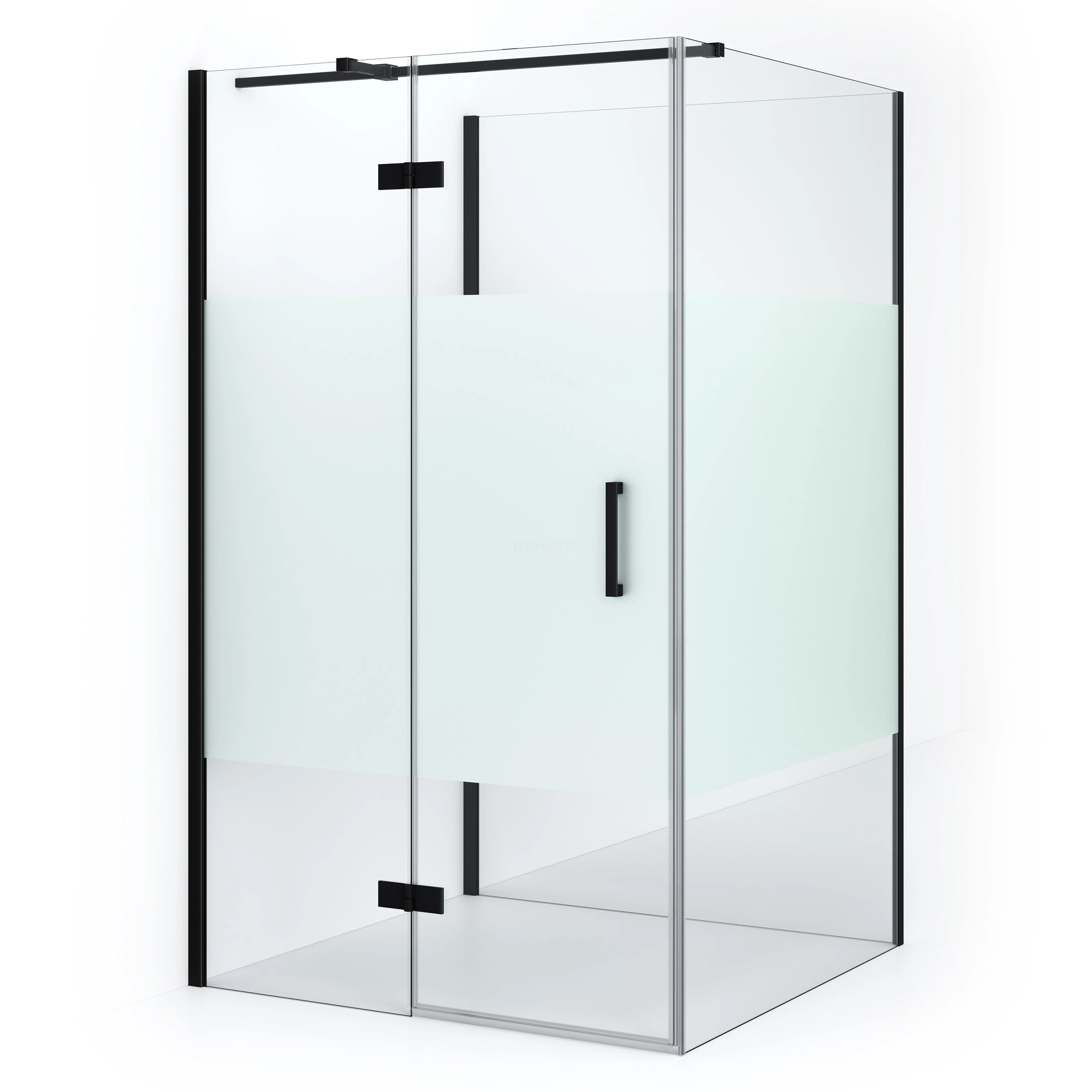 In the stylish semi-detached Diamond shower enclosure, measuring 120x120 cm, you will enjoy wonderful shower sessions every day. This square enclosure is characterised by a wall profile and the vertical handle. This one has a cool, matte black finish and clear glass with a frosted strip for more privacy. The shower is adjustable, making it easy to fit. The door side and parallel fixed wall are adjustable from 118.1 - 119.6 cm. The angled fixed wall has a fixed size of 120.6 cm.