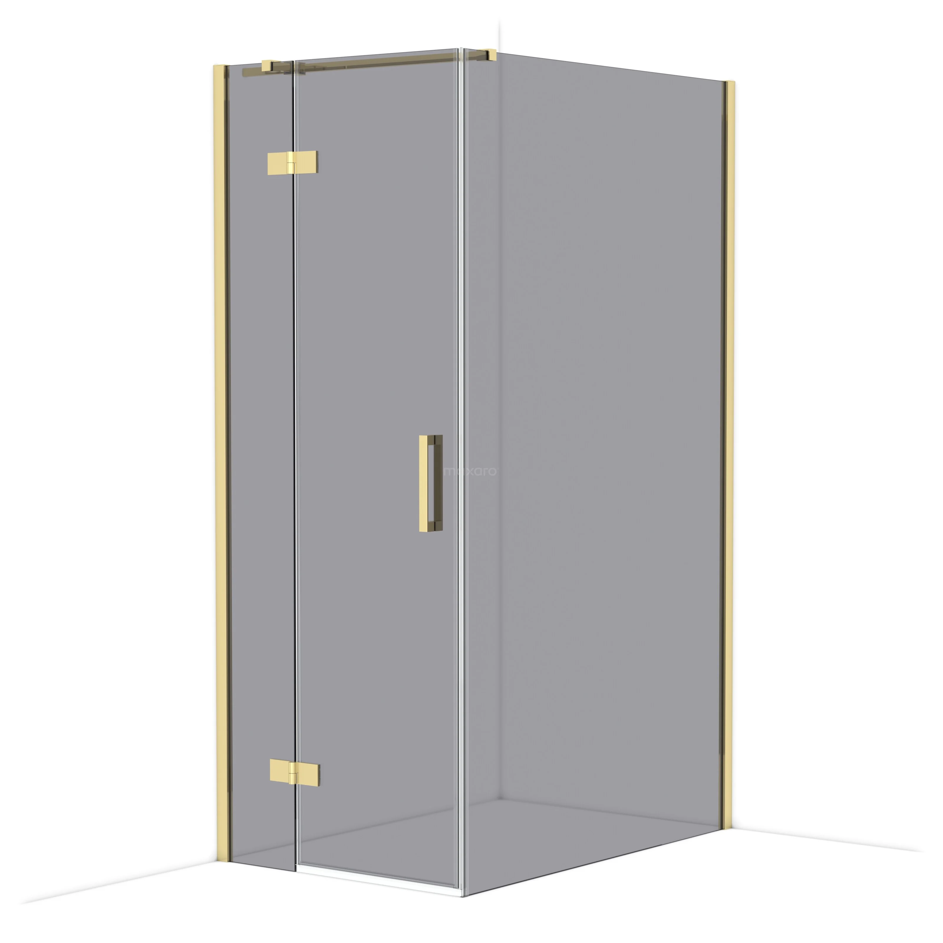 In the stylish Diamond shower cabin measuring 120x80 cm, you can enjoy delightful shower sessions every day. This rectangular cabin is characterised by a wall profile and a vertical handle. This model features a refined and luxurious design in glossy light gold and is equipped with smoked glass for a chic appearance. The shower is adjustable, making it easy to fit.
