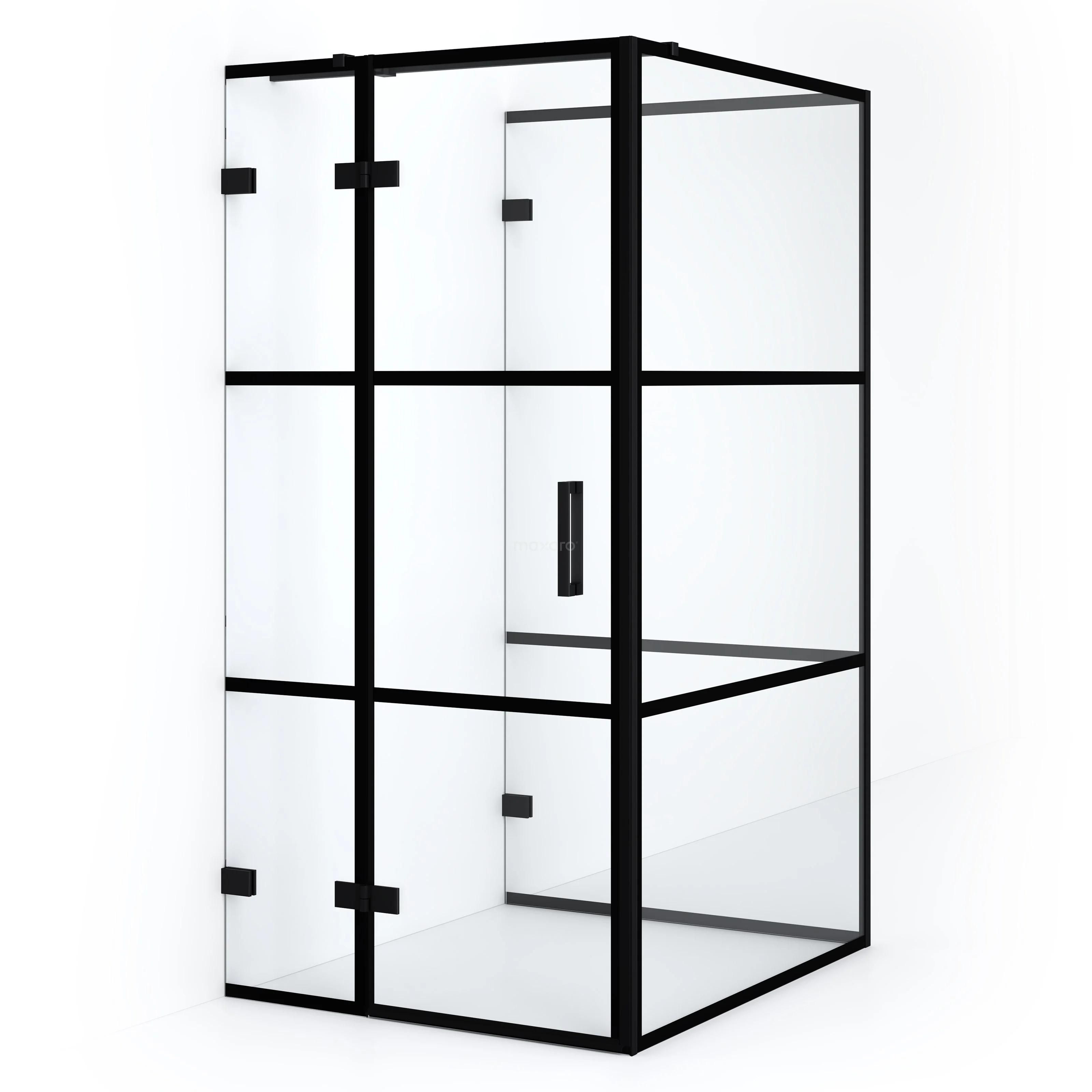 Diamond Shower cabin | 120x90 cm Matte black Clear with 4 black stripes Pivot door Semi-detached rectangle